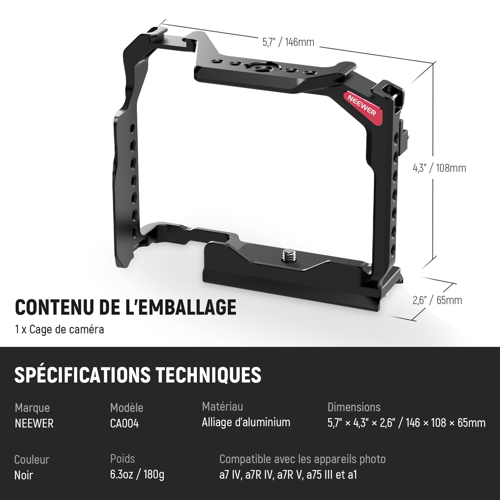 NEEWER CA004 Cage de caméra complète Compatible avec Sony a7RV/ a7IV/ a7RIV/ a7SIII/ a1