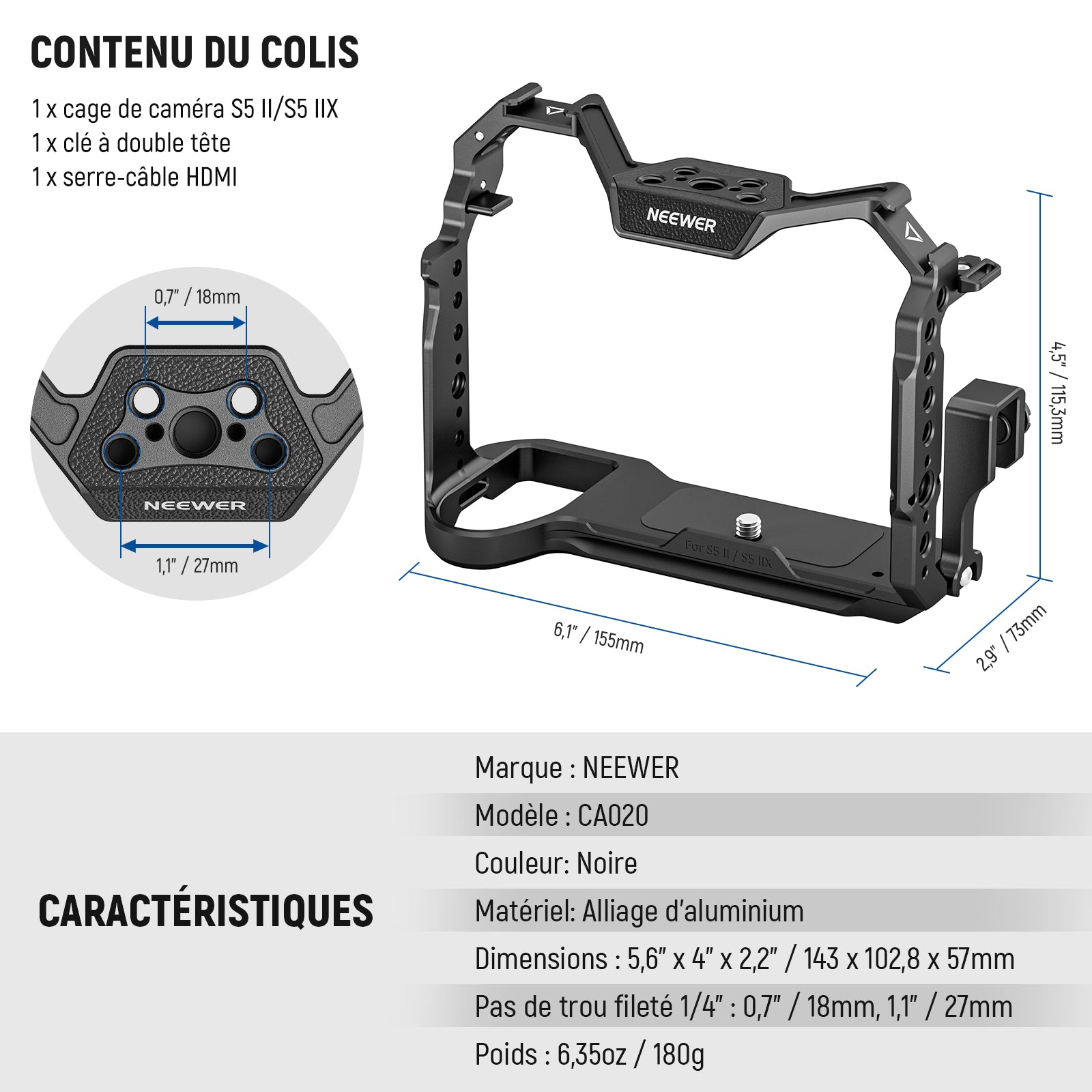 - 1 x cage de caméra S5 II/S5 IIX