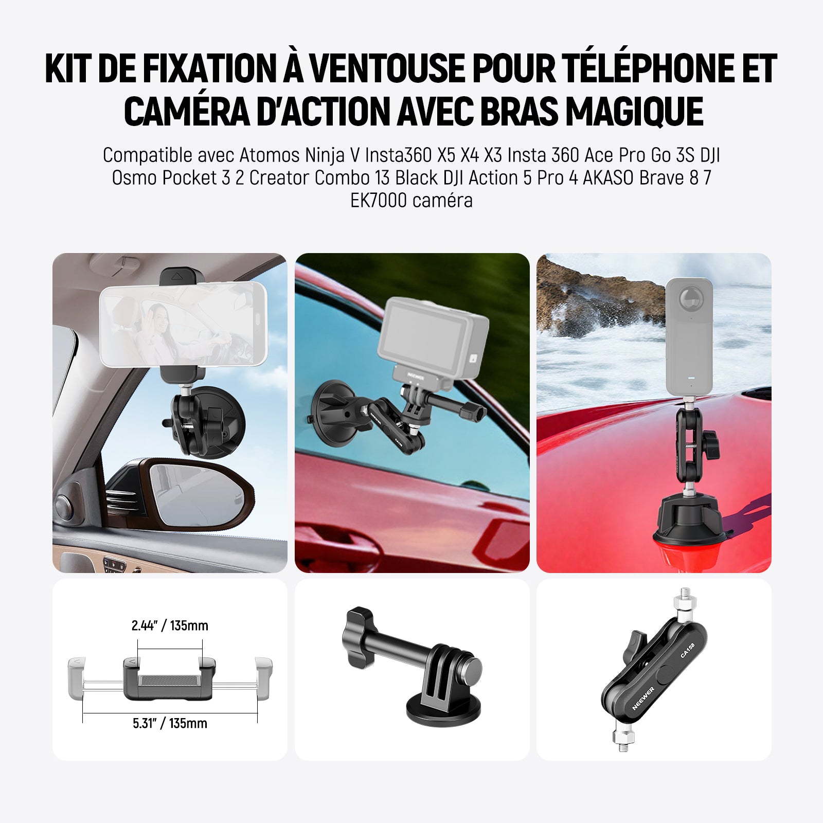 - 【Vis 1/4'' et adaptateur à trois broches】ce kit d'accessoires et de fixations pour support voiture est compatible avec Atomos Ninja V Insta360 X5 X4 X3 Insta 360 Ace Pro Go 3S DJI Osmo Pocket 3 2 Creator Combo GoPro Hero 13 Go Pro 12 11 10 9 Black DJI Action 5 Pro 4 AKASO Brave 8 7 EK7000.