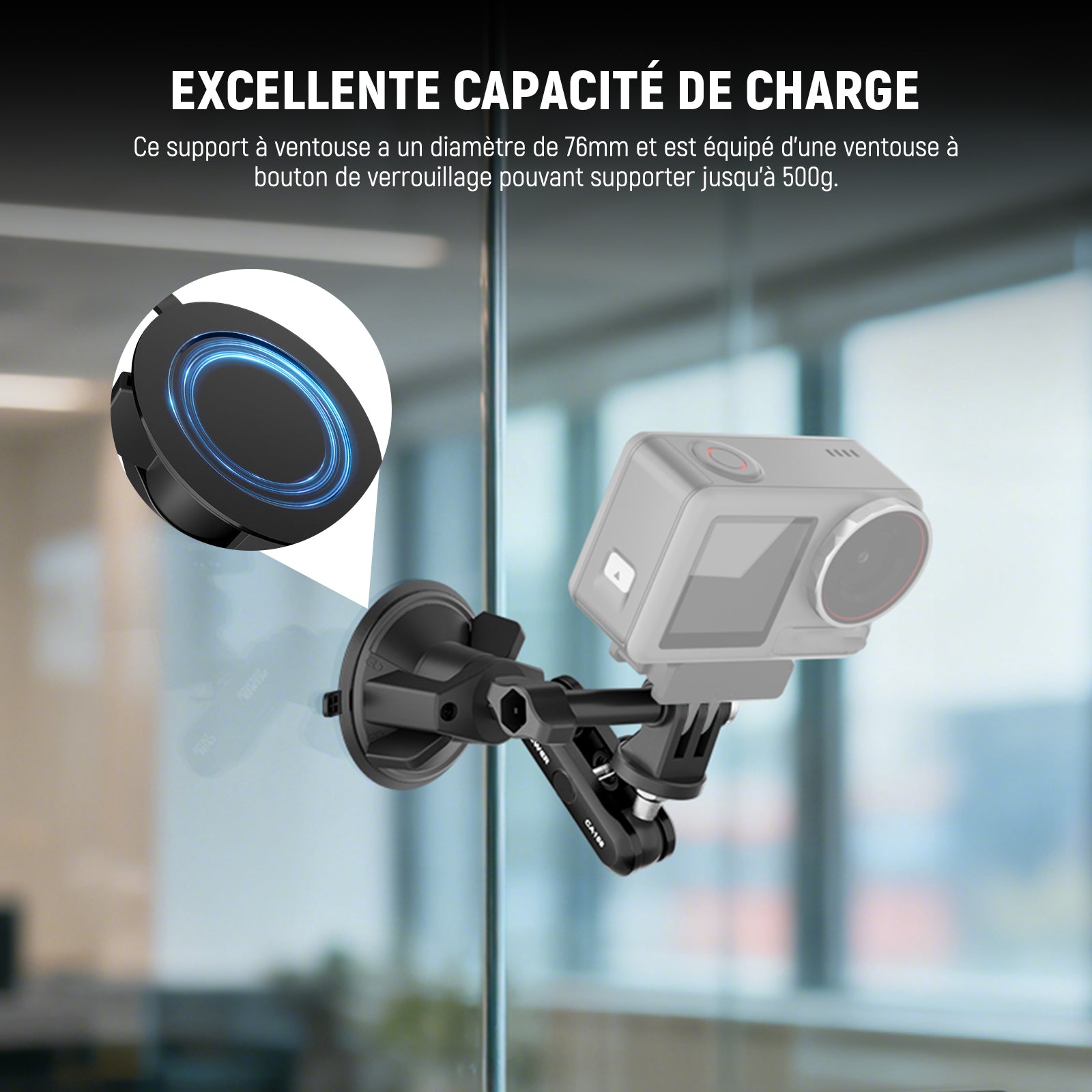 - 【Installation rapide et sécurisée】le support à ventouse pour téléphone et appareil photo se fixe instantanément à votre pare-brise d'un simple clic. Idéal pour l'enregistrement stable de vlogs, les tournages, la navigation et les appels vidéo.