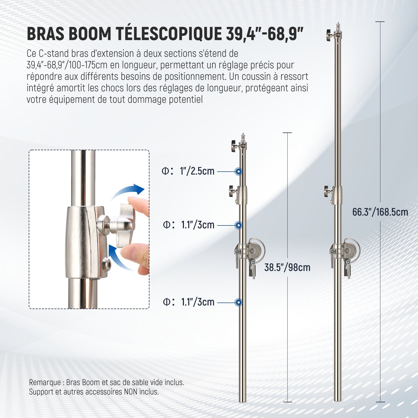 NEEWER DS021 100 à 175 cm Bras d'Extension Robuste en Acier Inox