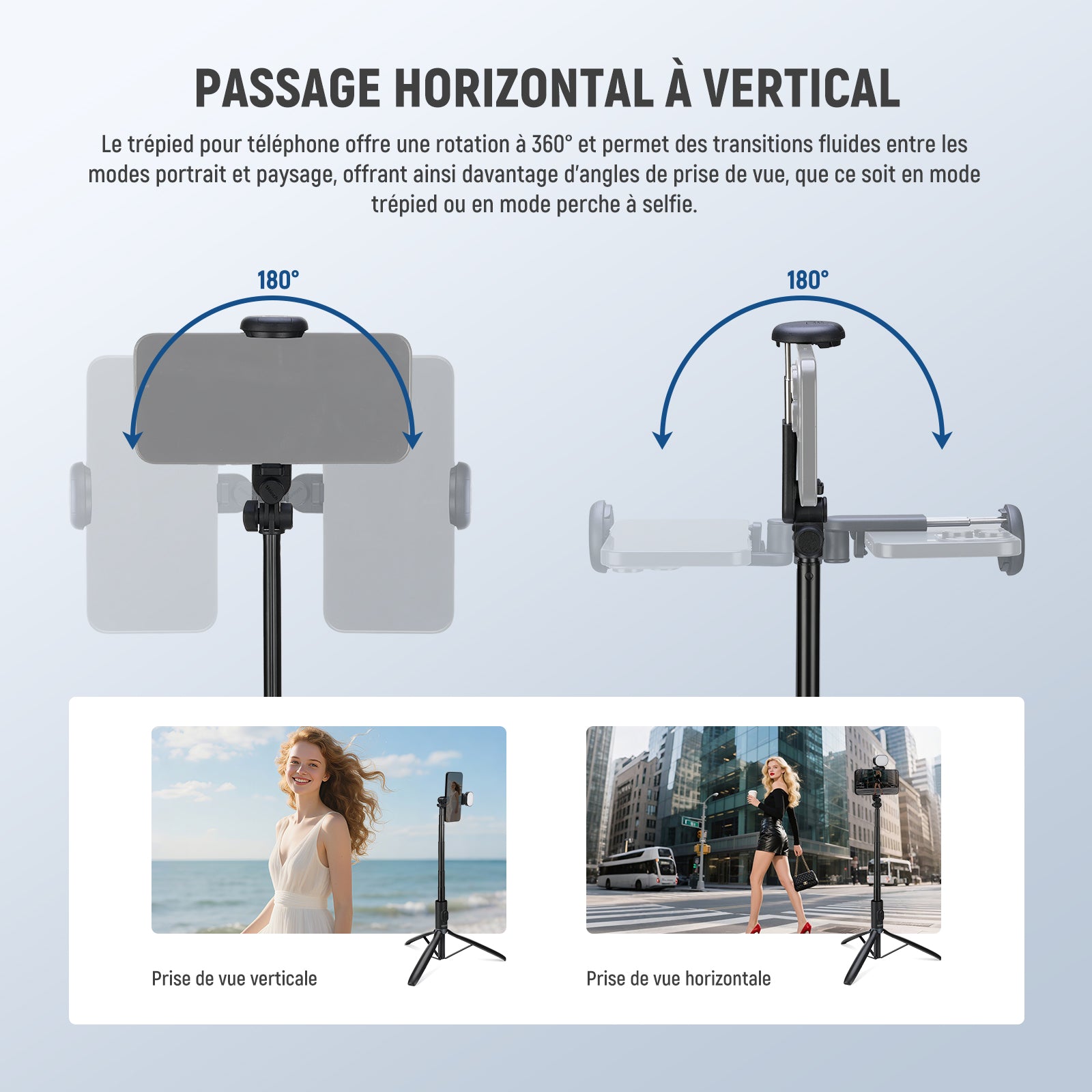 - 【Commutateur Horizontal vers Vertical】 Le grand support de trépied offre 360° rotation et permet des transitions fluides entre les modes portrait & paysage,offrant plus d'angles de prise de vue pour le mode trépied debout et le mode selfie stick compact portable,compatible avec iPhone 16/16 Pro/16 Pro Max iPhone 16e 15 14 Pro Max 13 Pro Max 14 Plus 13 Mini 12 11 X XS Samsung Galaxy S25 S24 S23 S22 Ultra Huawei Pixel 9 8 7 Pro et autres mobiles comme accessoires de photographie de téléphone
