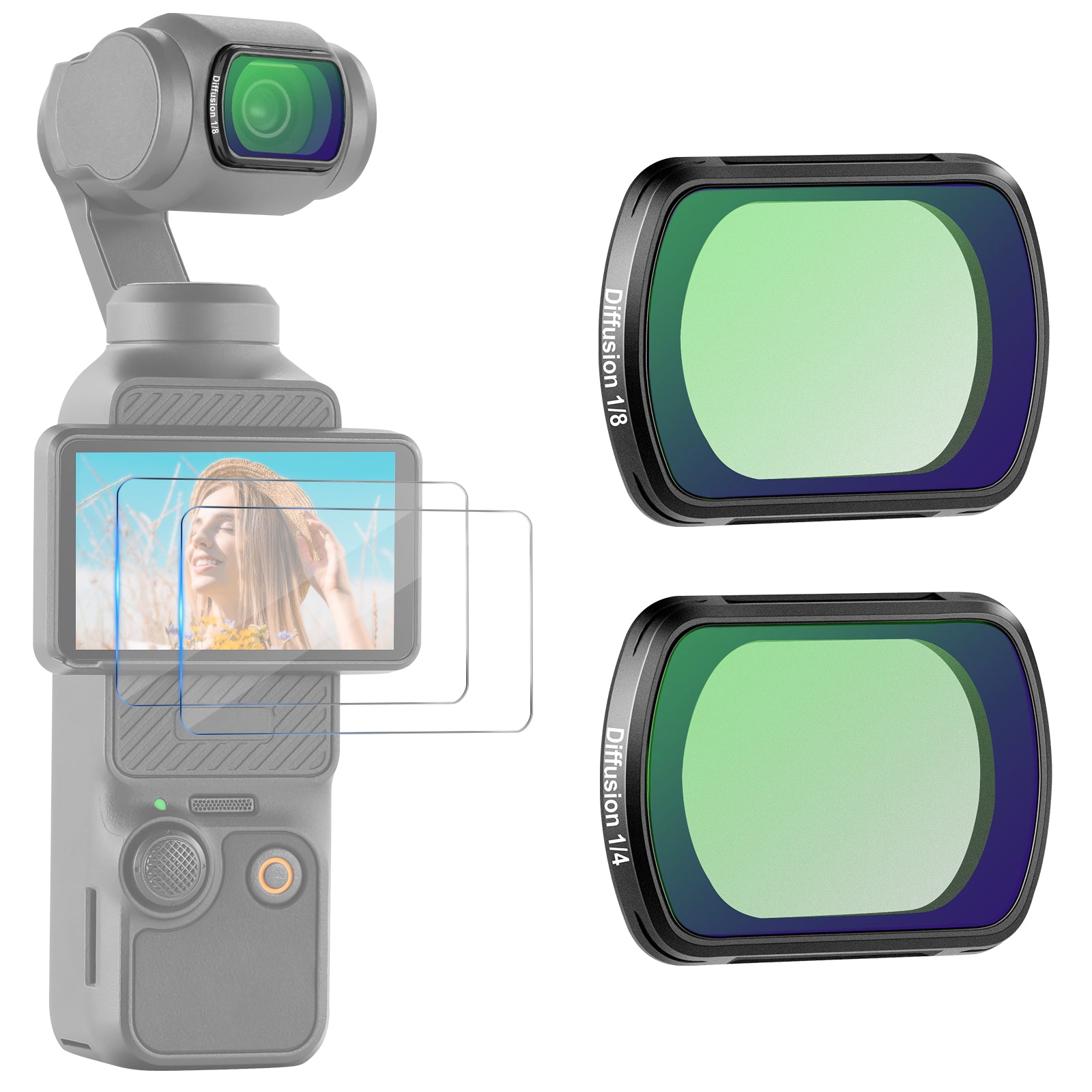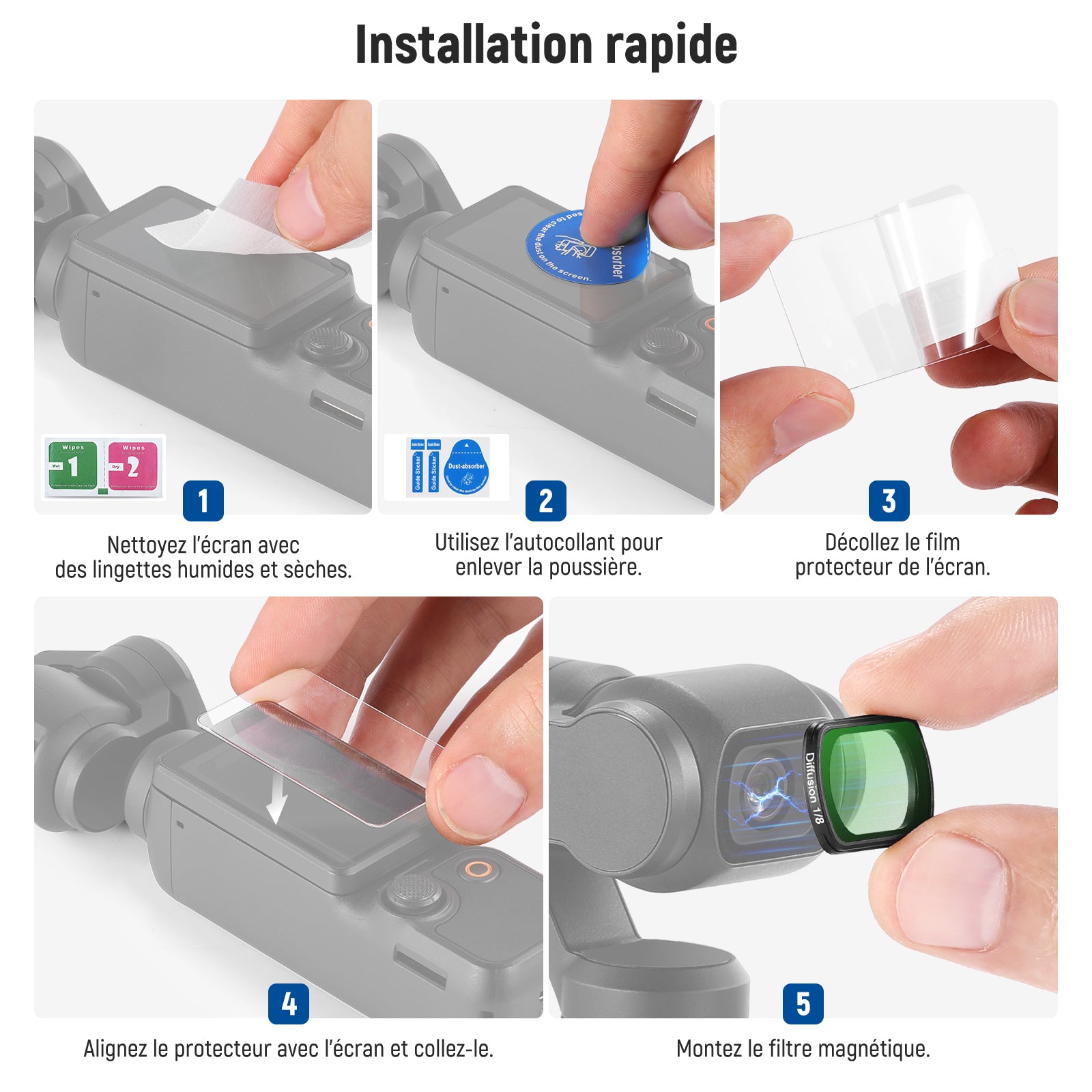 - Compatible avec DJI Osmo Pocket 3 : cet ensemble de filtres de diffusion noirs 1/4 et 1/8 est compatible avec DJI Osmo Pocket 3. Un changeur de jeu pour les professionnels et les amateurs chevronnés, il dispose d'une fixation magnétique instantanée et sécurisée et d'un verre optique HD pour une image cristalline pendant le vlogging et la prise de vue de l'appareil photo