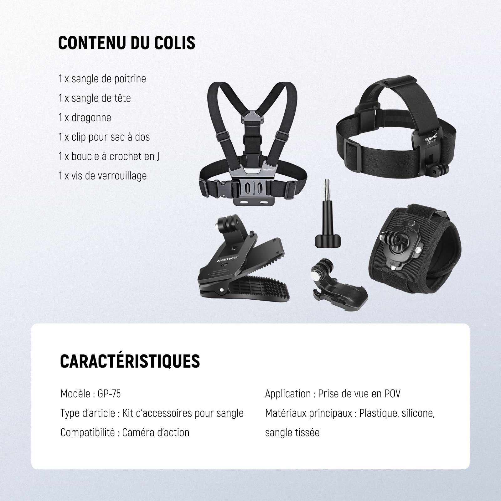 NEEWER GP-75 Kit d’accessoires de fixation par sangle pour Caméra d'action