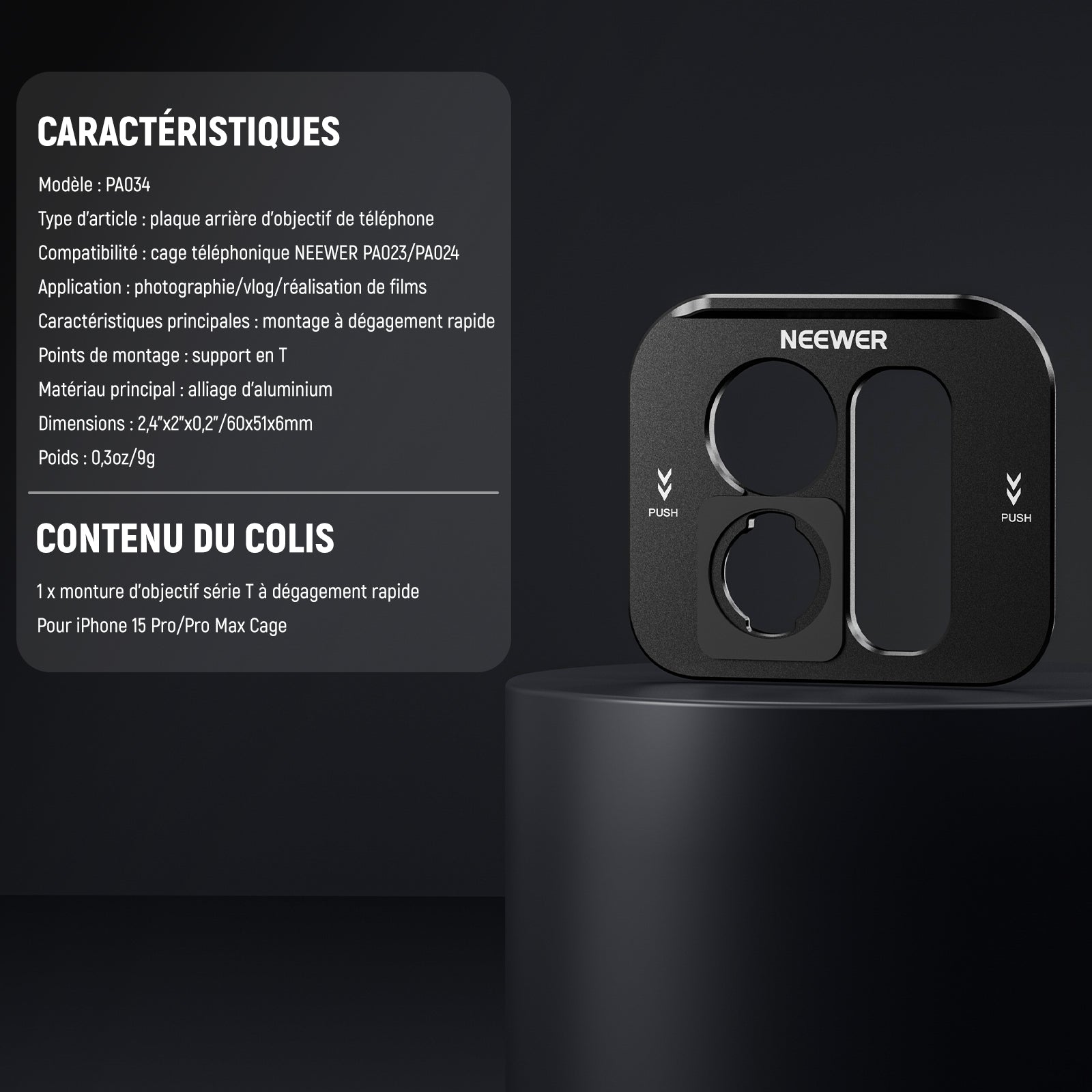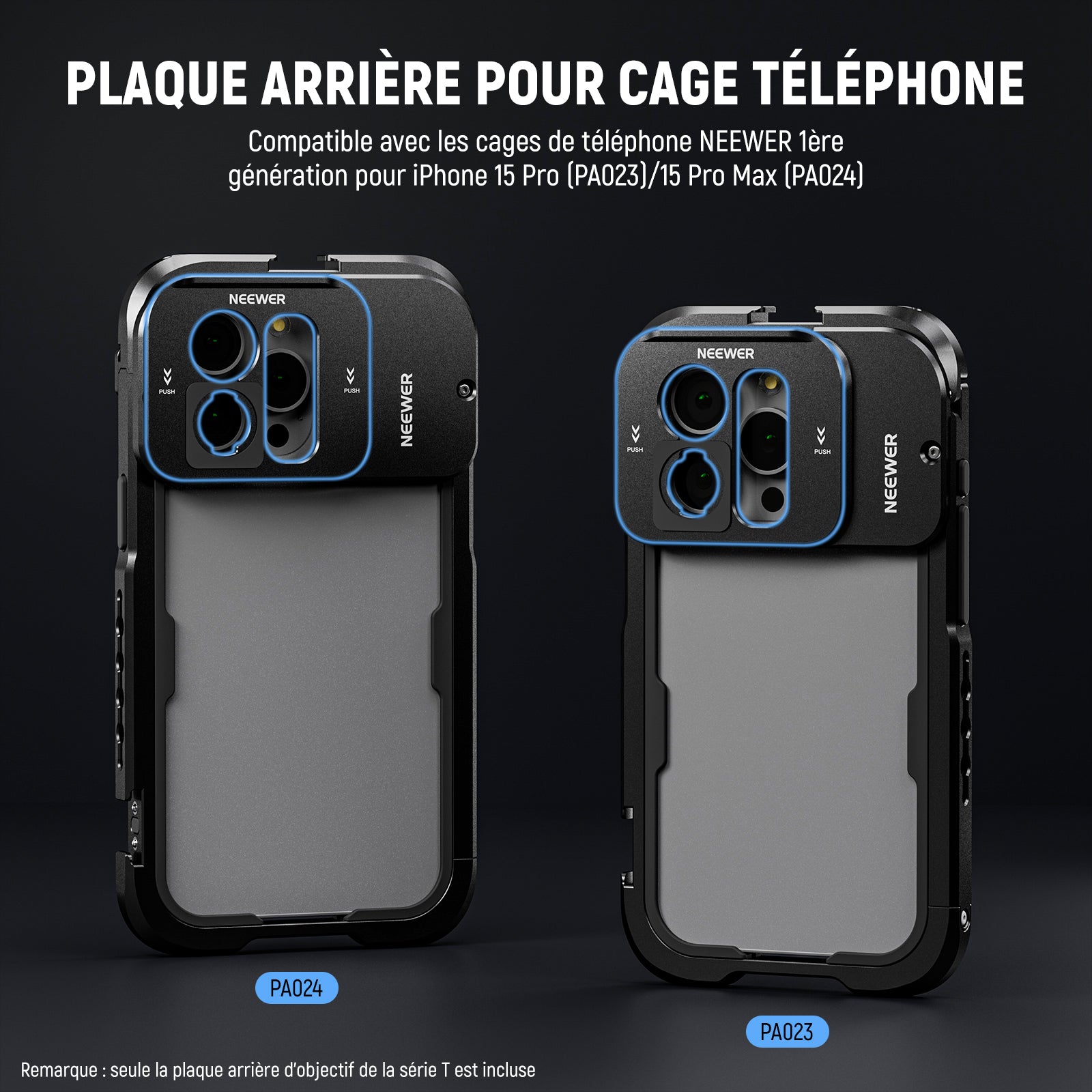 NEEWER PA034 Plaque Arrière d'Objectif Série T pour iPhone 15 Pro & iPhone 15 Pro Max Cage de Téléphone (PA023 et PA024),