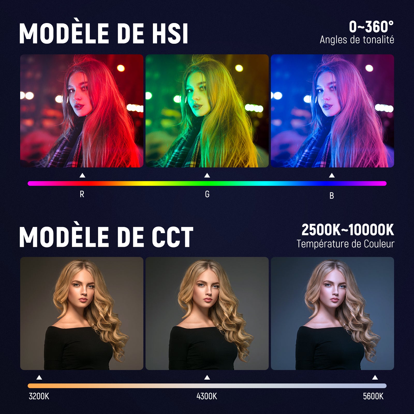- 【Éclairage vidéo RGB professionnel】 Doté de 176 LED premium (96 RGB, 40 blanc chaud et 40 blanc froid), ce panneau d'éclairage LED pour caméra offre un éclairage large et uniforme. Il offre une plage de couleurs à 360°(H), une saturation de 0 à 100%, une gradation continue de 0 à 100% et une température de couleur variable de 3200K à 5600K, idéal pour les prises de vue vidéo et photo. De plus, 9 effets lumineux spéciaux, dont feux d'artifice, fête, bougies, etc., simulent des scènes réelles.
