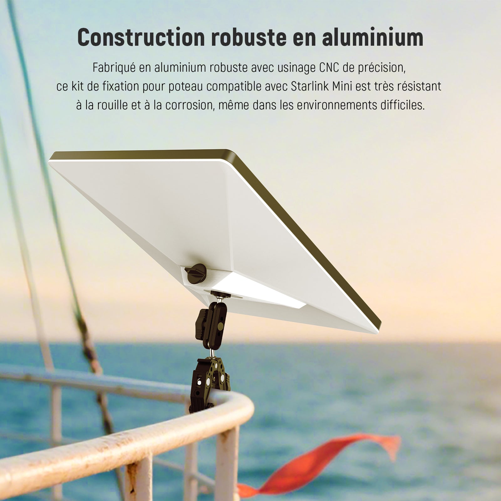 - 【Construction en aluminium robuste】 Fabriqué en aluminium robuste avec un usinage CNC de précision, ce kit de fixation pour poteau compatible avec Starlink Mini est très résistant à la rouille et à la corrosion, même dans des environnements difficiles comme les campings, les camping-cars ou les bateaux. Il constitue un choix idéal pour les installations Internet temporaires lors d'aventures en plein air.