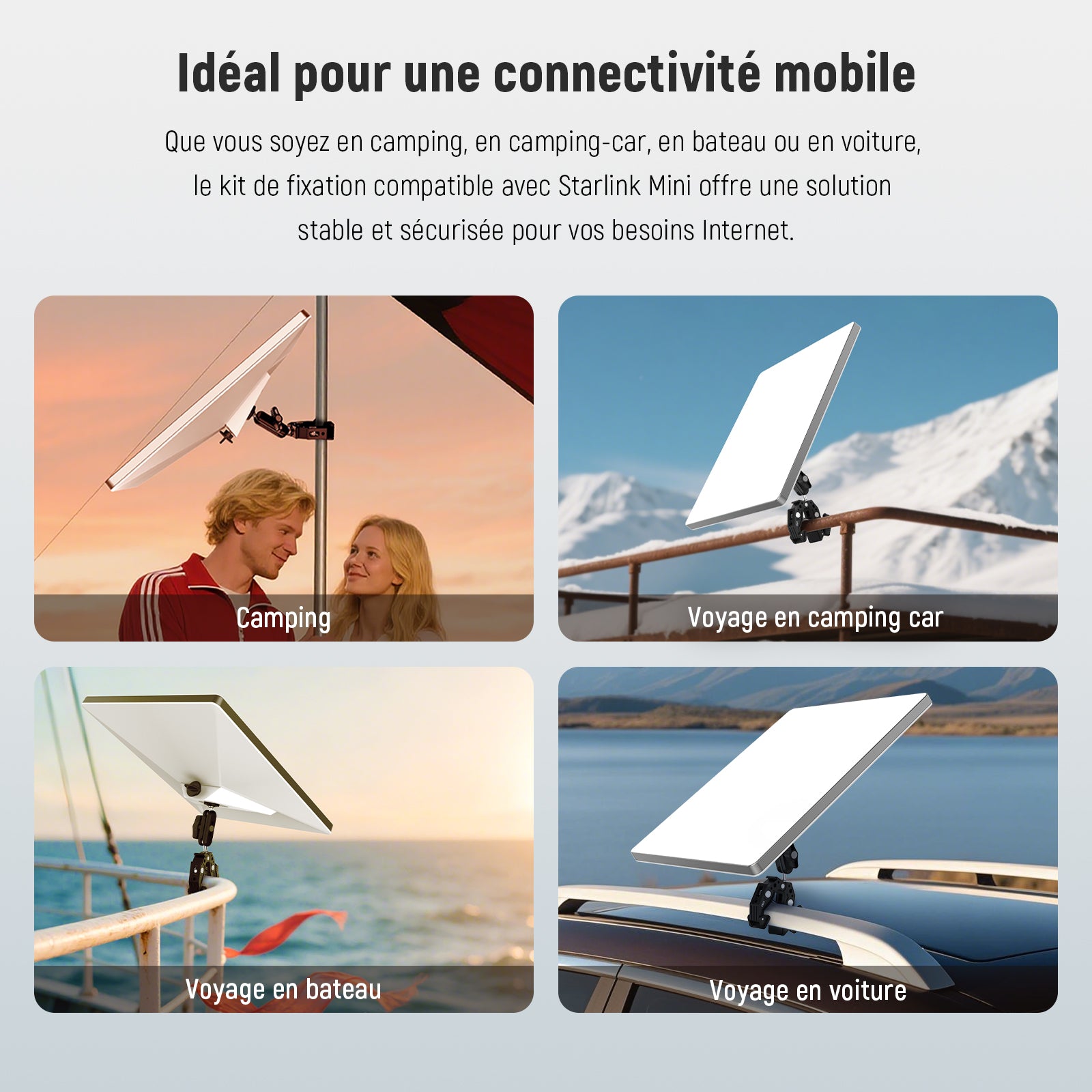 - 【Idéal pour une connectivité mobile】 Que vous soyez en camping, en voyage en camping-car ou en bateau, ou que vous télétravailliez, le kit de pinces de montage compatible avec Starlink Mini offre une solution stable et sécurisée pour vos besoins Internet. Sa conception polyvalente et sa facilité d'installation en font un accessoire indispensable pour tous ceux qui utilisent leur appareil pour une connexion Internet haut débit dans des endroits reculés.