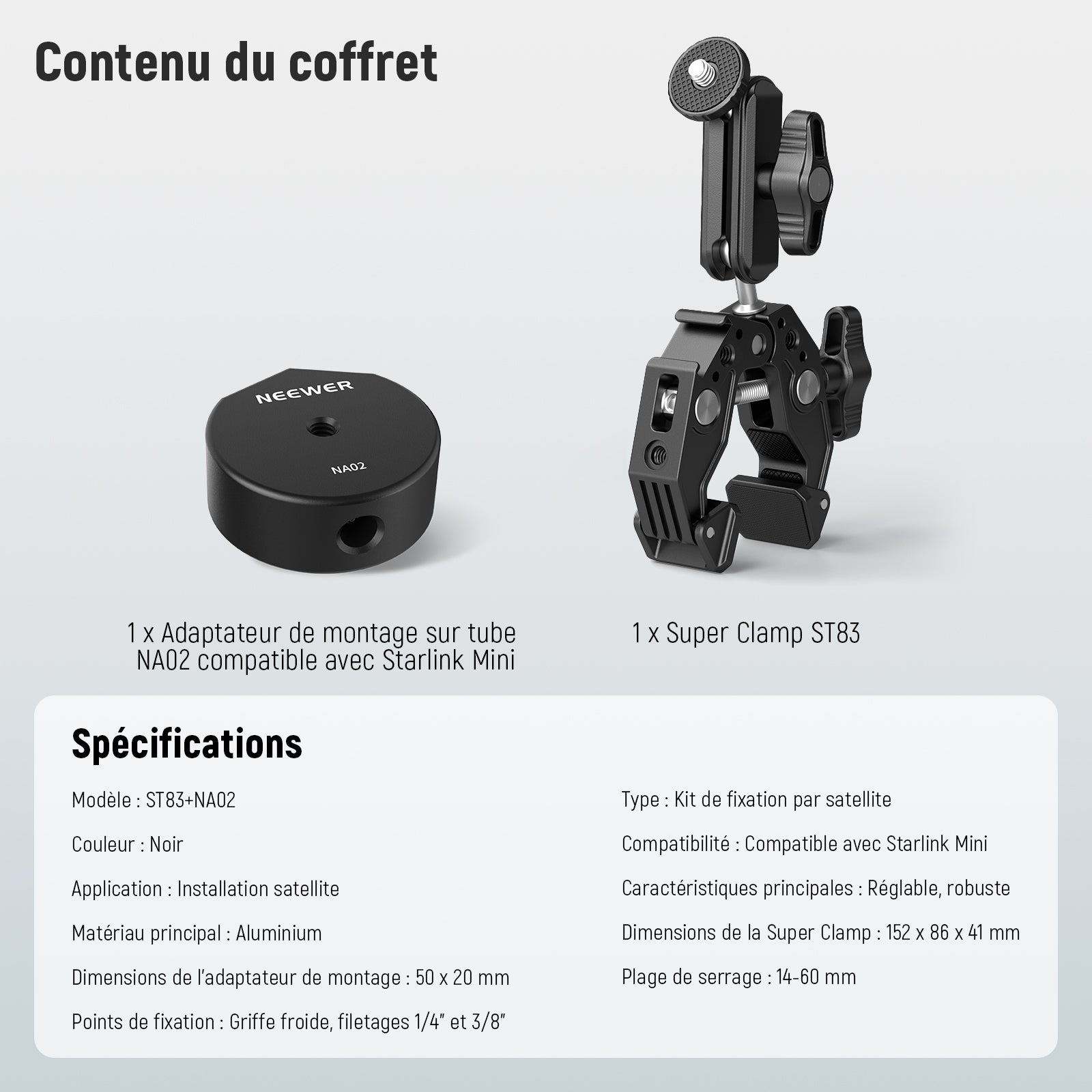 NEEWER ST83+NA02 Kit d'Accessoires Montage en Alum pour Starlink Mini