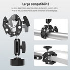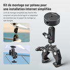 - 【Portable et facile à installer】 Léger et compact, ce kit de fixation en aluminium se glisse facilement dans un sac à dos. La pince crabe est équipée d'une vis de 6,35mm, tandis que l'adaptateur de montage est doté de filetages de 6,35mm et de 9,5mm. Insérez fermement l'adaptateur dans le support de votre terminal satellite, puis fixez-le à la vis de la pince de montage et fixez-le sur un poteau. La pince recouverte de caoutchouc maintient fermement le poteau, assurant une fixation stable.