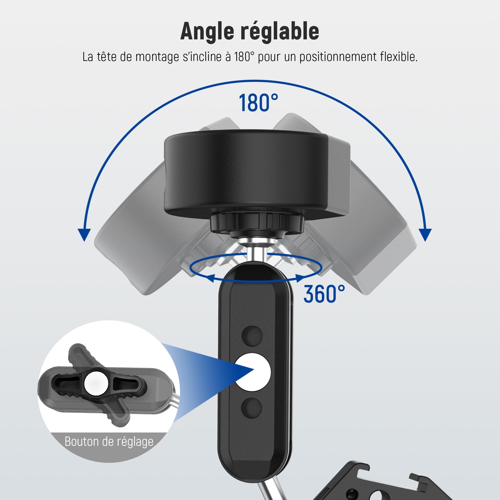 - 【Angle réglable et grande compatibilité】La pince de fixation s'adapte à des objets de diamètre compris entre 14 et 60mm. Elle est idéale pour une installation sur les balustrades de balcon, les clôtures, les poteaux de camping-car, les rampes extérieures ou autres tiges cylindriques. La tête de montage s'incline à 180° pour un positionnement flexible, vous permettant d'ajuster votre appareil pour une réception optimale du signal.
