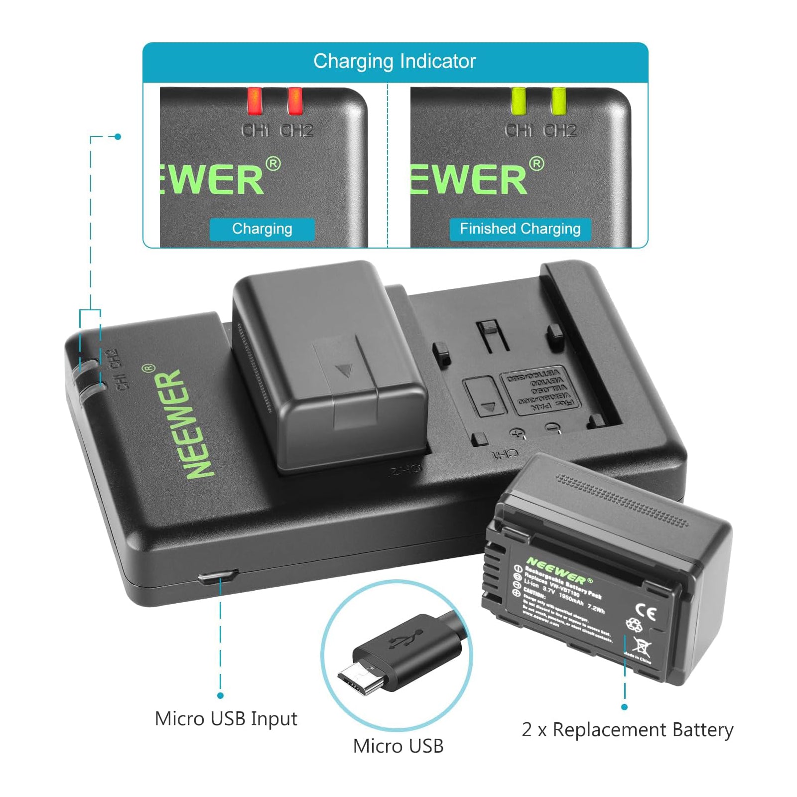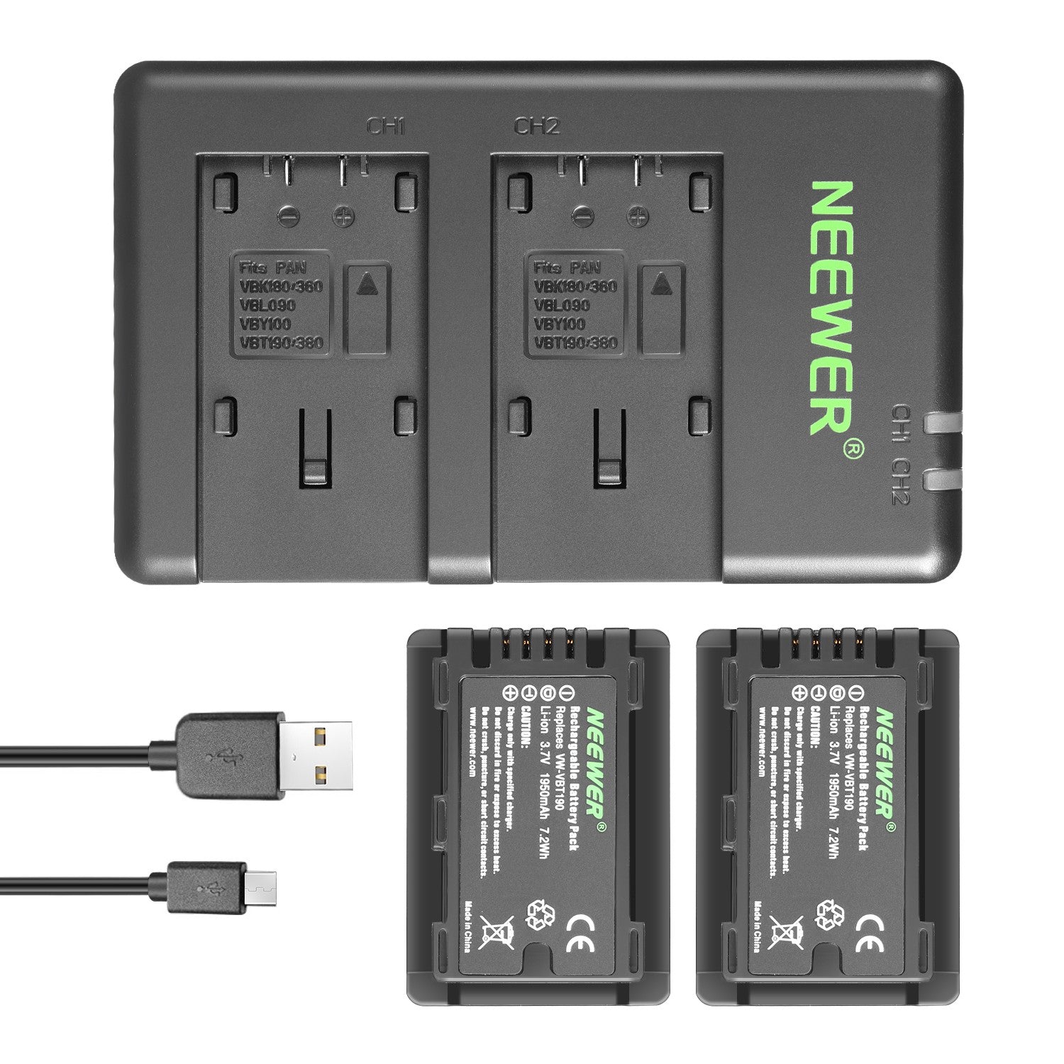NEEWER Set de 2 Batteries de remplacement et chargeur Compatible avec Panasonic VW-VBT190