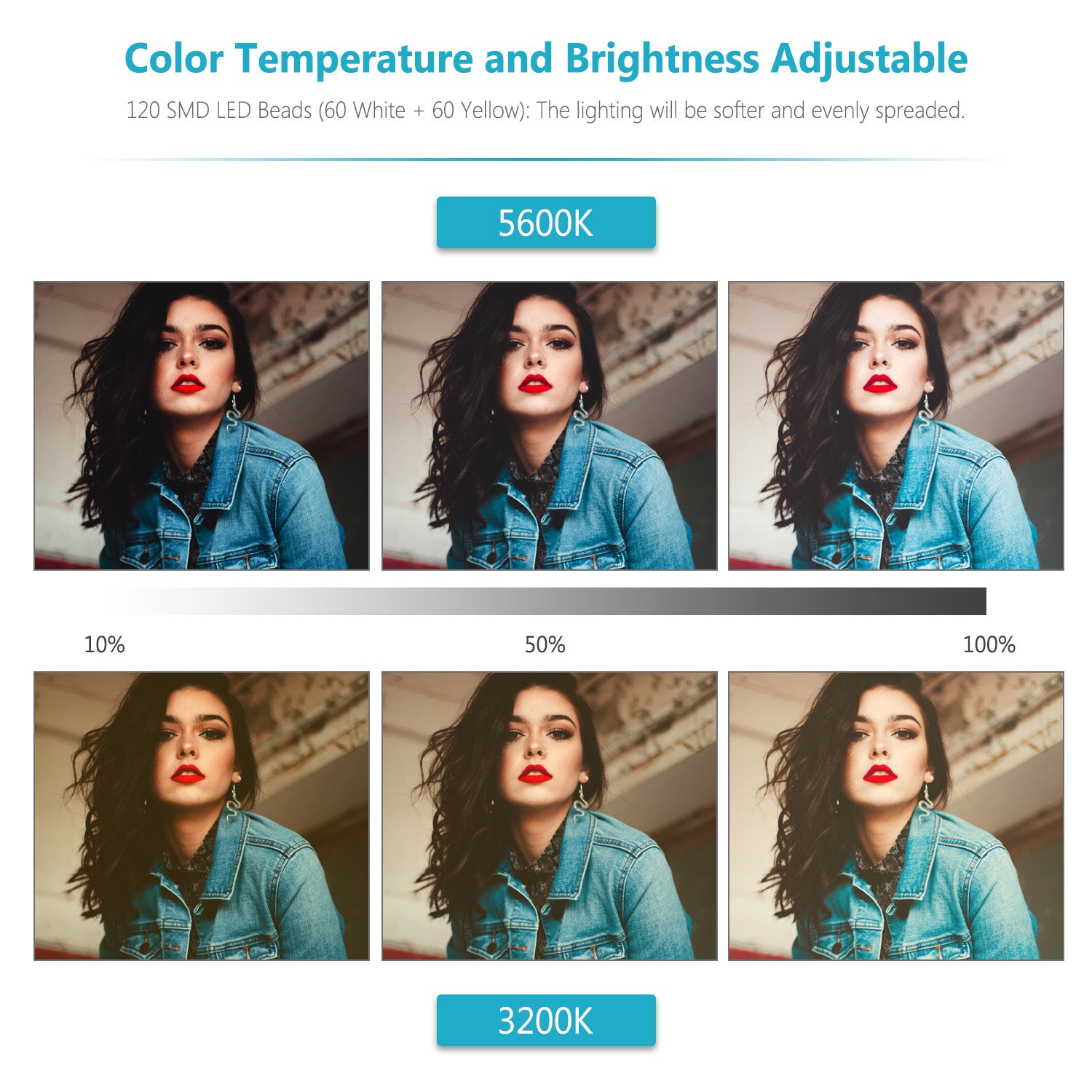 - Color Temperature: 3200K-5600K(100)