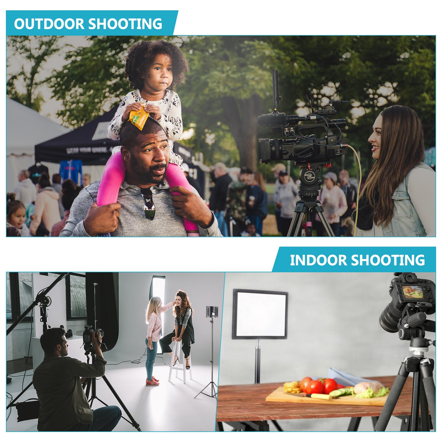 - It can be mounted on digital SLR cameras or camcorders, even tripods and light stand.