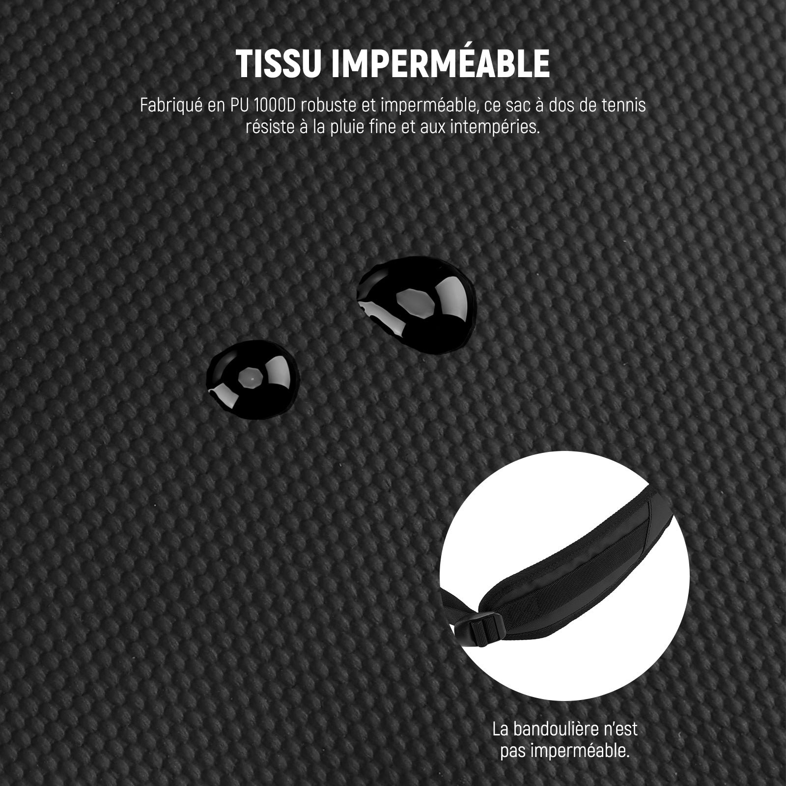 - 【Tissu imperméable】 Fabriqué en PU 1000D robuste et résistant à l'eau, ce sac à dos de tennis résiste à la pluie fine et aux intempéries. Ses fermetures éclair lisses et robustes offrent une performance fiable au quotidien.
