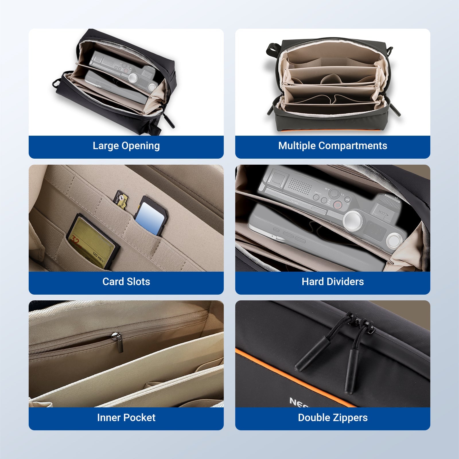 NEEWER PB27 Carrying Case simultaneously stores multiple action cameras and keeps them safe and organized.