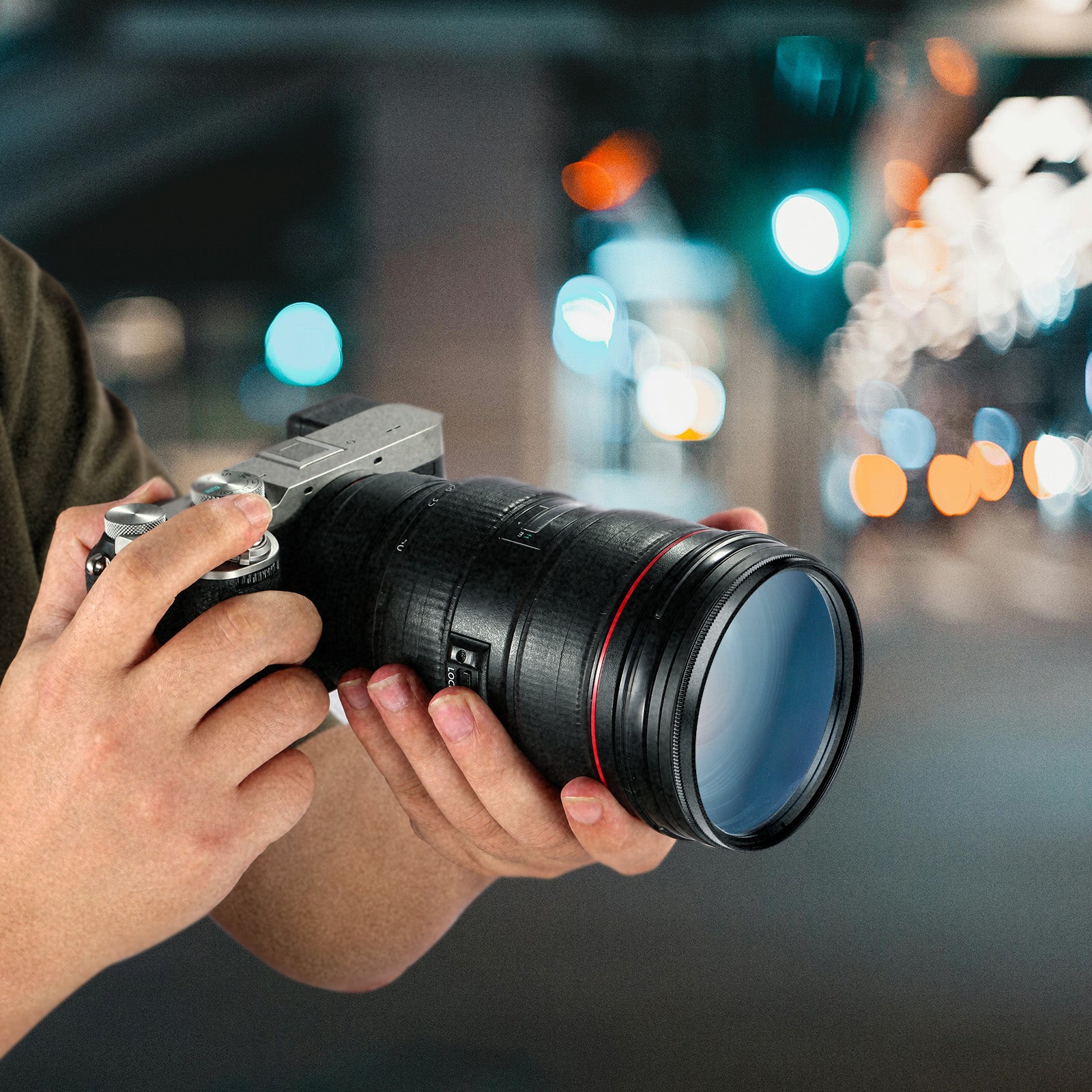 • 【Pour filtres de 62mm】 Compatible avec tous les filtres de ø62mm, y compris les filtres UV, CPL, ND, diffusion noire, couleur graduée, étoile, traînée bleue et réduction de la pollution lumineuse (filtres vendus séparément)