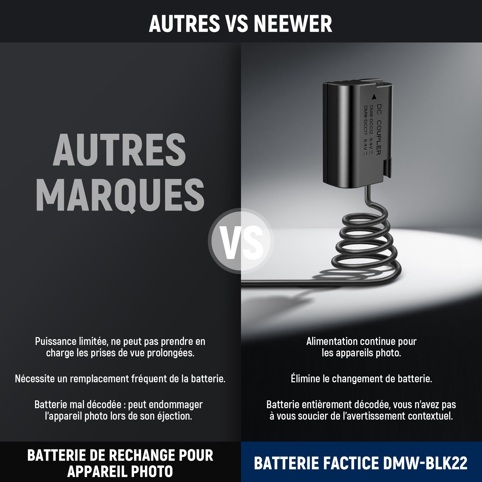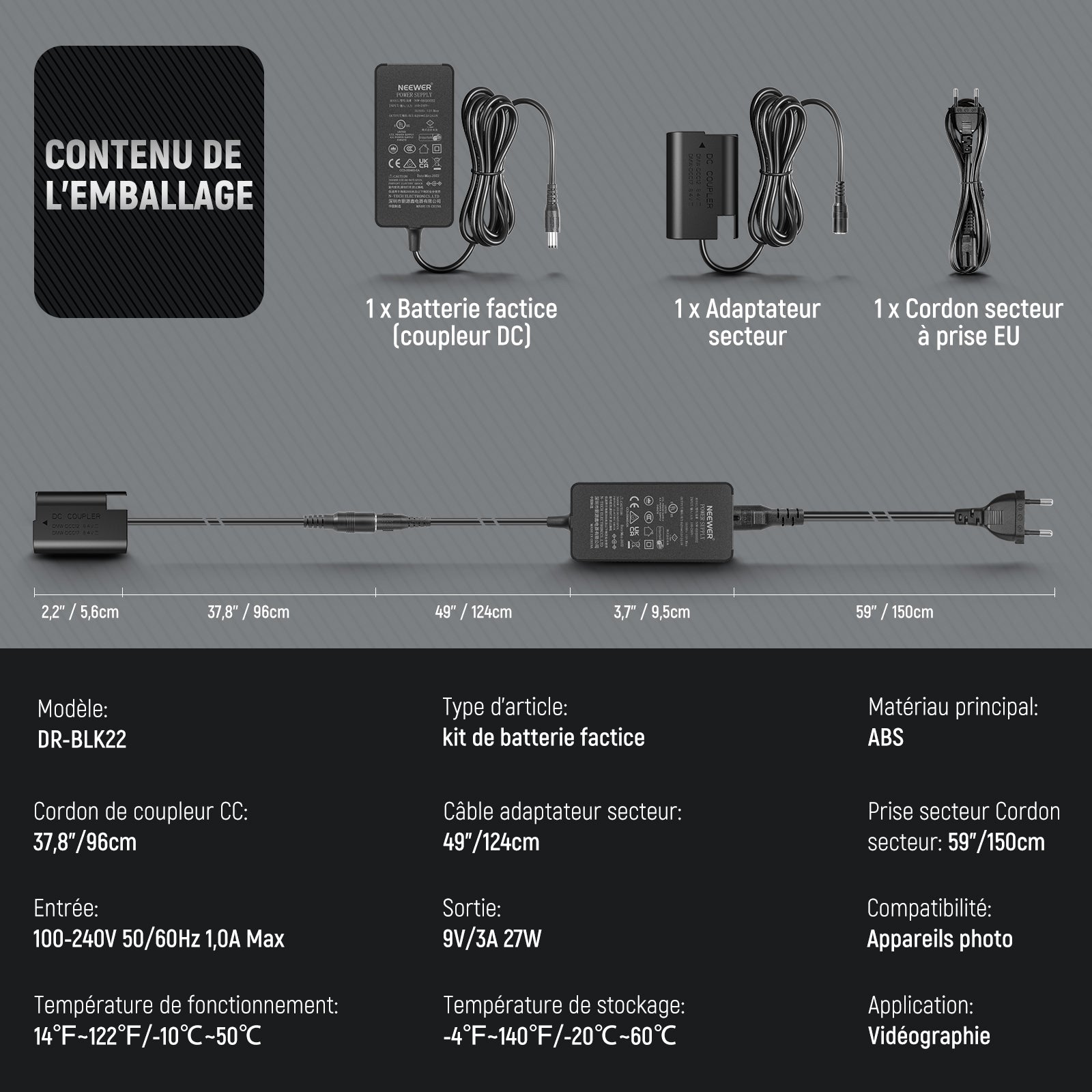 NEEWER DR-BLK22 Adaptateur AC Power DMW-BLK22 & Kit Chargeur Batterie Factice Coupleur DC