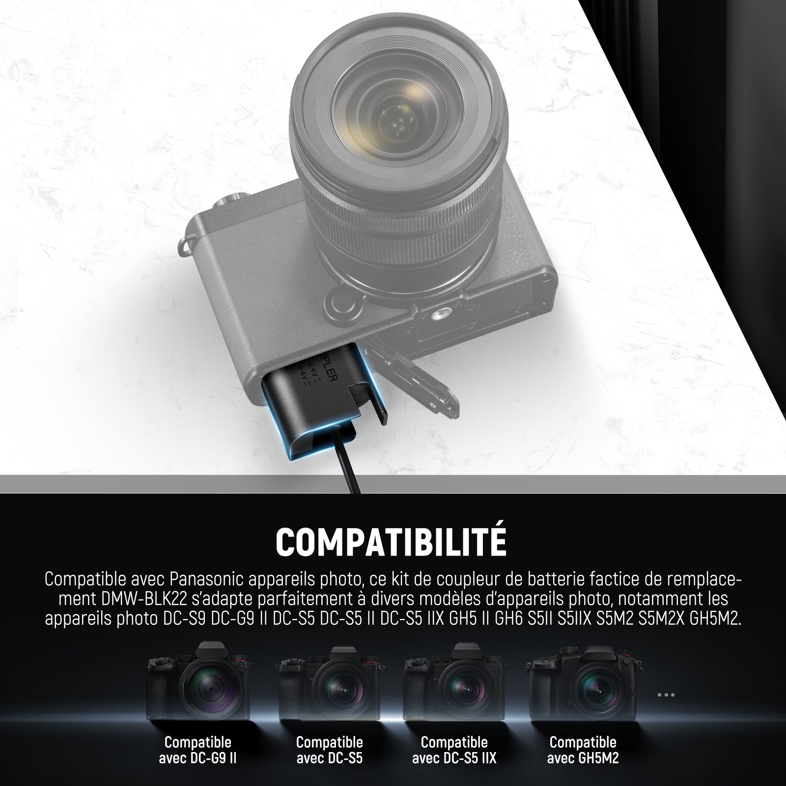 - 【Contenu de l'emballage】 Le kit d'alimentation pour appareils photo comprend 1 x batterie factice DMW-BLK22, 1 x adaptateur CA/CC et 1 x cordon d'alimentation CA. Idéal pour les photographes professionnels, les vidéastes, les vlogueurs et les créateurs de contenu à la recherche de solutions d'alimentation sans tracas