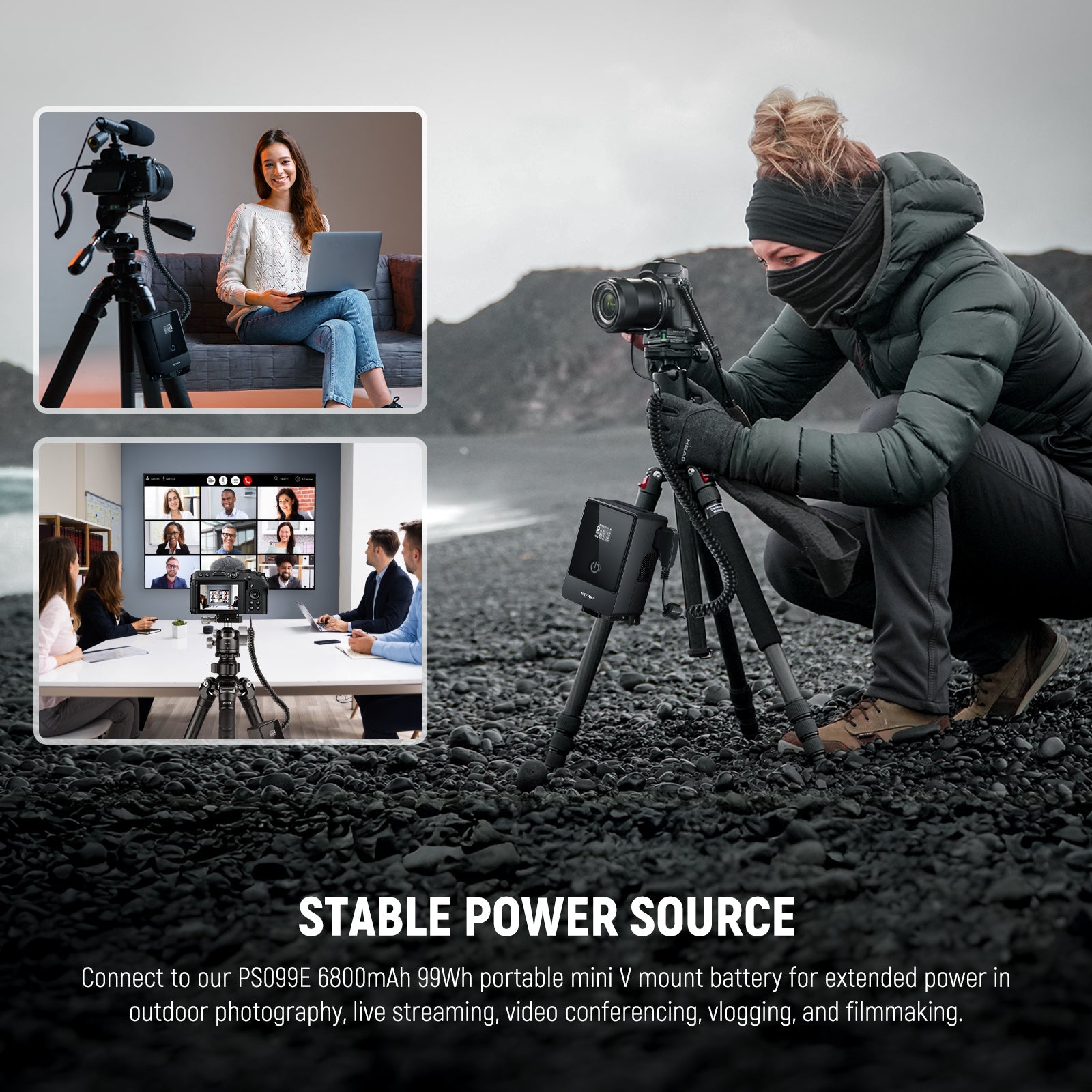 - 【Puissance stable pour des séquences plus longues et plus sûres】 Dites adieu aux pannes de câbles et protégez vos séquences critiques. Notre puce intelligente garantit une alimentation constante et stable pour votre création. Connectez-vous à notre batterie portable mini V Mount PS099E 6800 mAh 99 Wh pour une puissance étendue pour la photographie en extérieur, la diffusion en direct, la vidéoconférence, le vlogging et la réalisation de films.