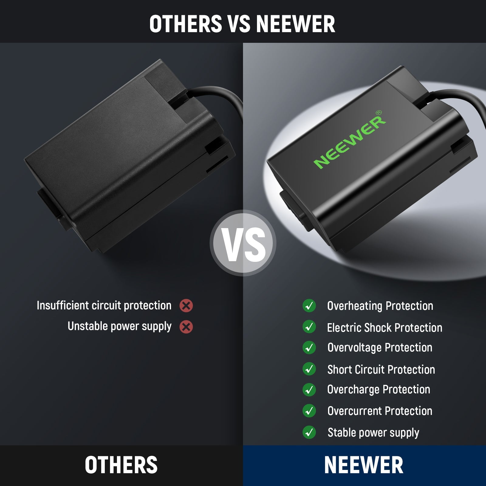 - 【Entièrement décodé avec système de protection intégré】 La batterie factice entièrement décodée garantit qu'aucune alerte pop-up n'interrompra vos sessions de création. Un système de protection avancé peut prévenir efficacement les surcharges, les courts-circuits, la surchauffe, les surintensités, les surtensions et autres dangers potentiels.