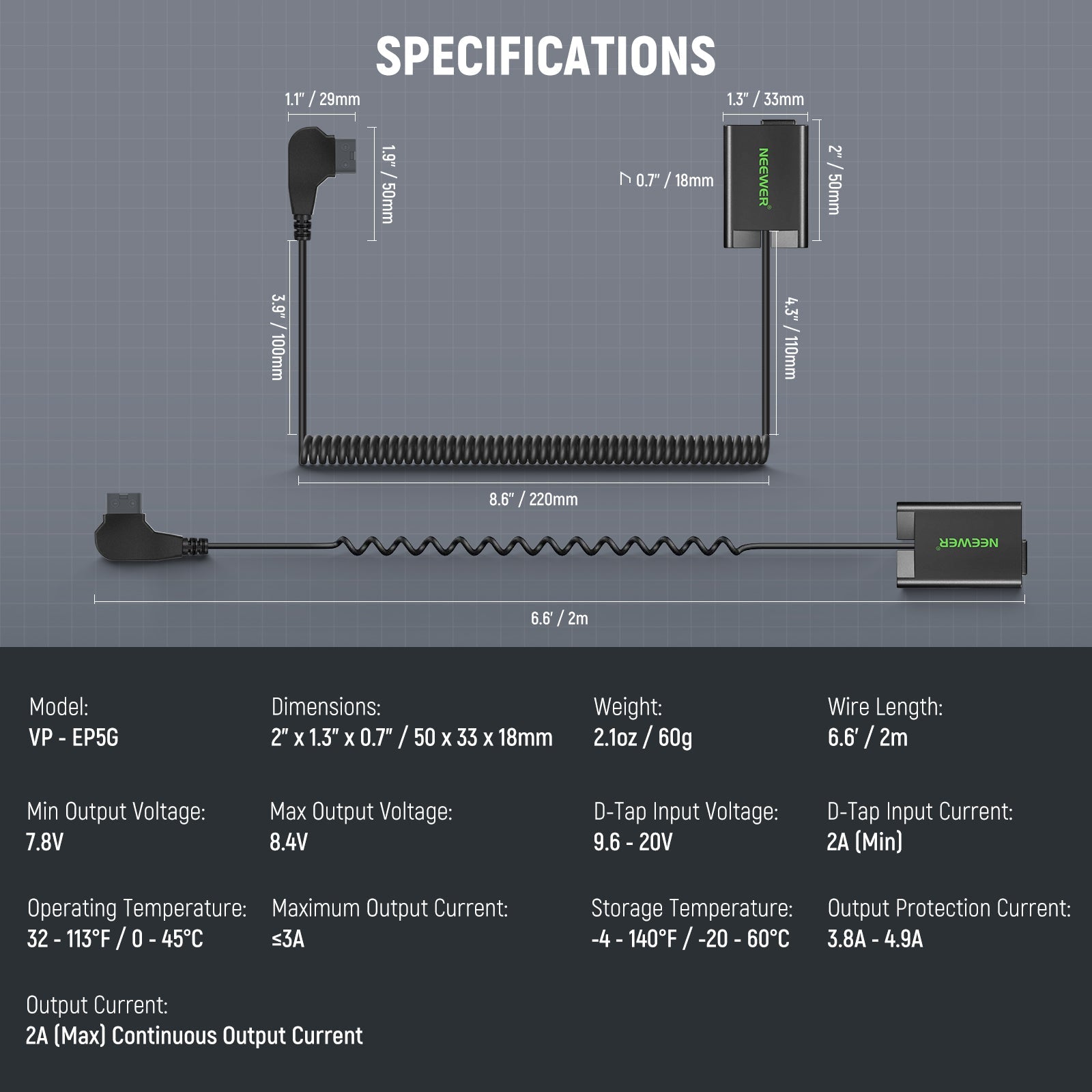 NEEWER VP-EP5G D Tap vers EN-EL25 Batterie Factice avec Câble