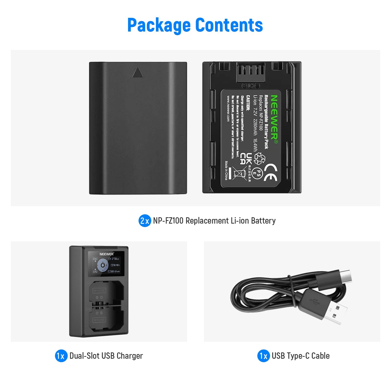 NEEWER Ensemble de chargeur de batterie de remplacement amélioré Compatible avec Sony NP-FZ100