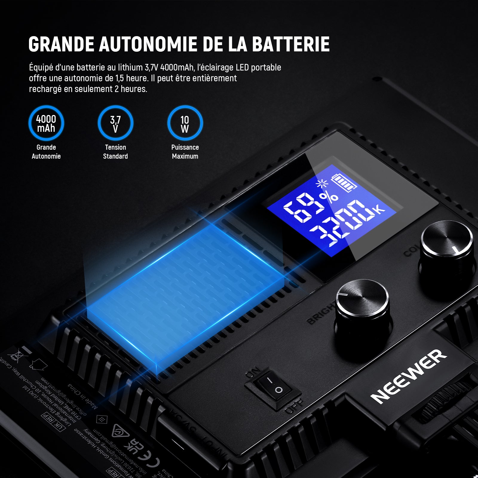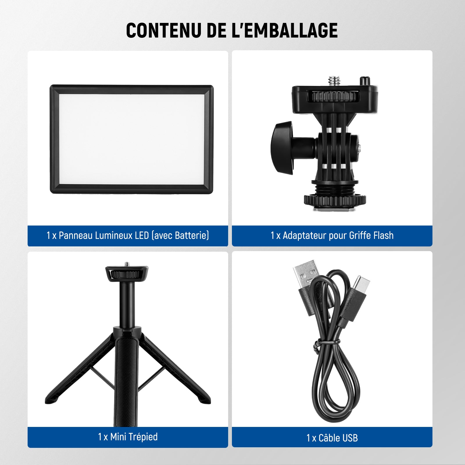 - 1 x Panneau d'éclairage vidéo LED avec batterie intégrée