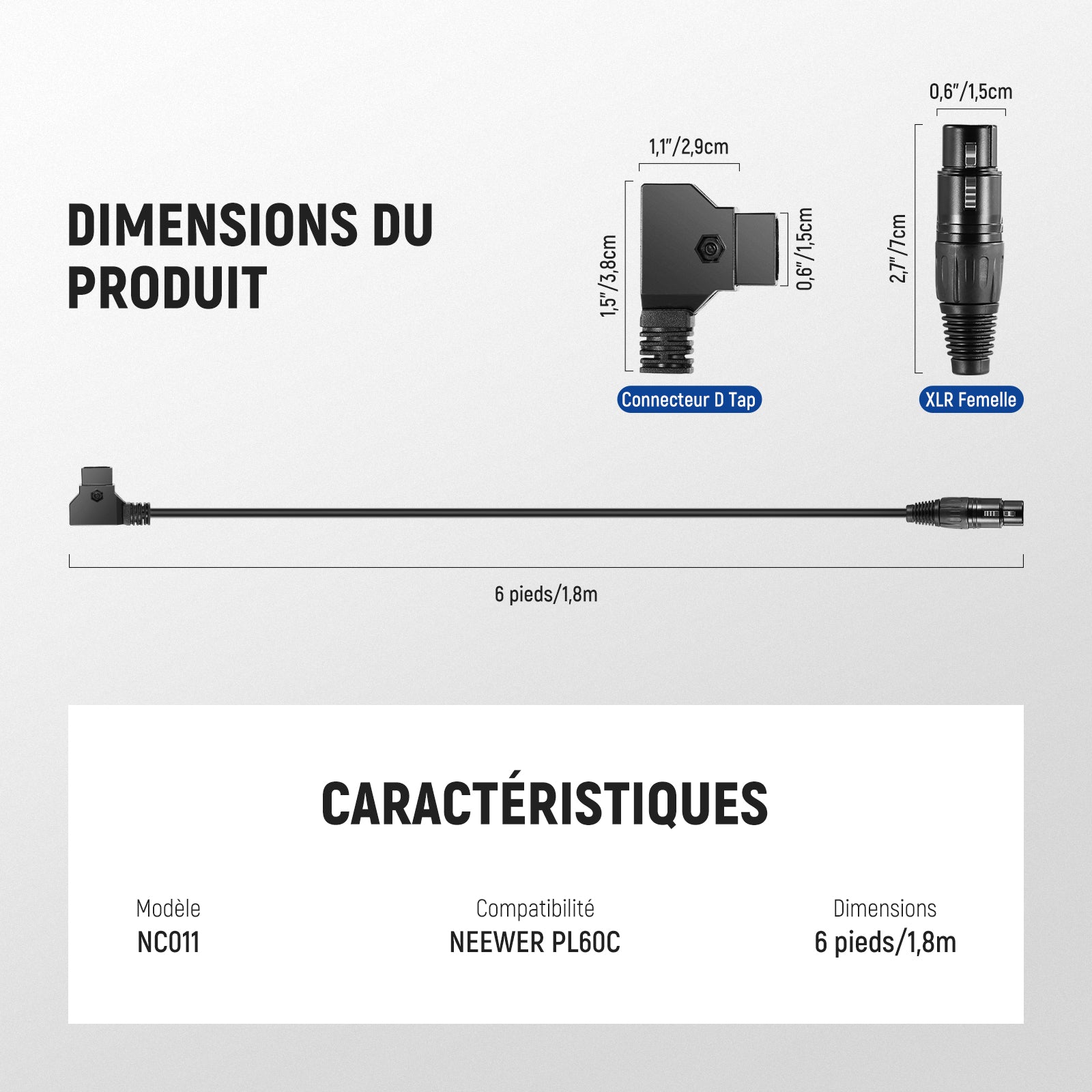 NEEWER NC011 Câble D-Tap vers XLR 4 broches pour PL60C Éclairage LED RGB