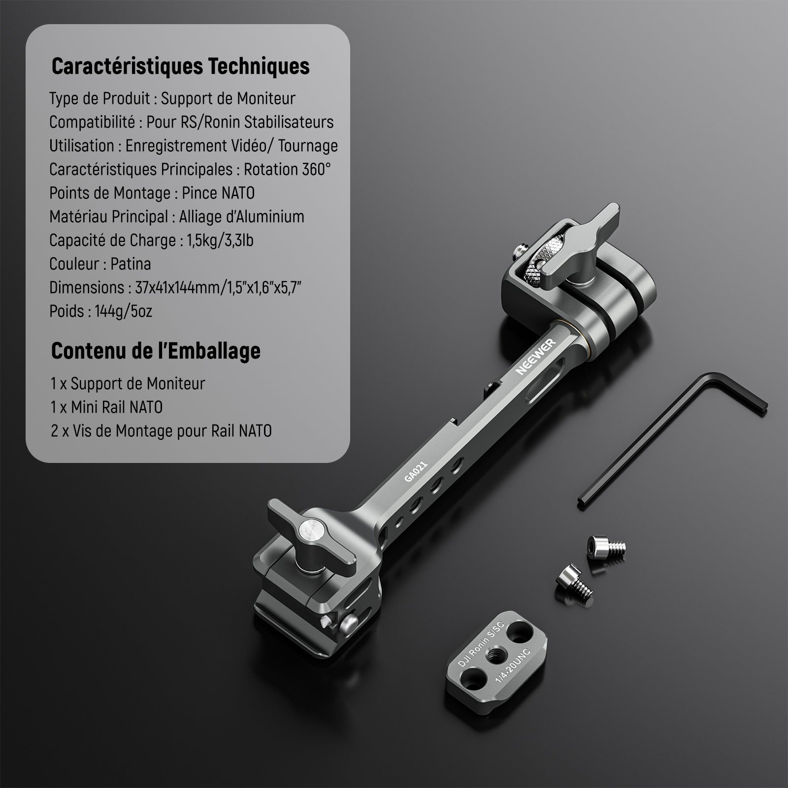NEEWER GA021 NATO Support de Moniteur pour cardan RS