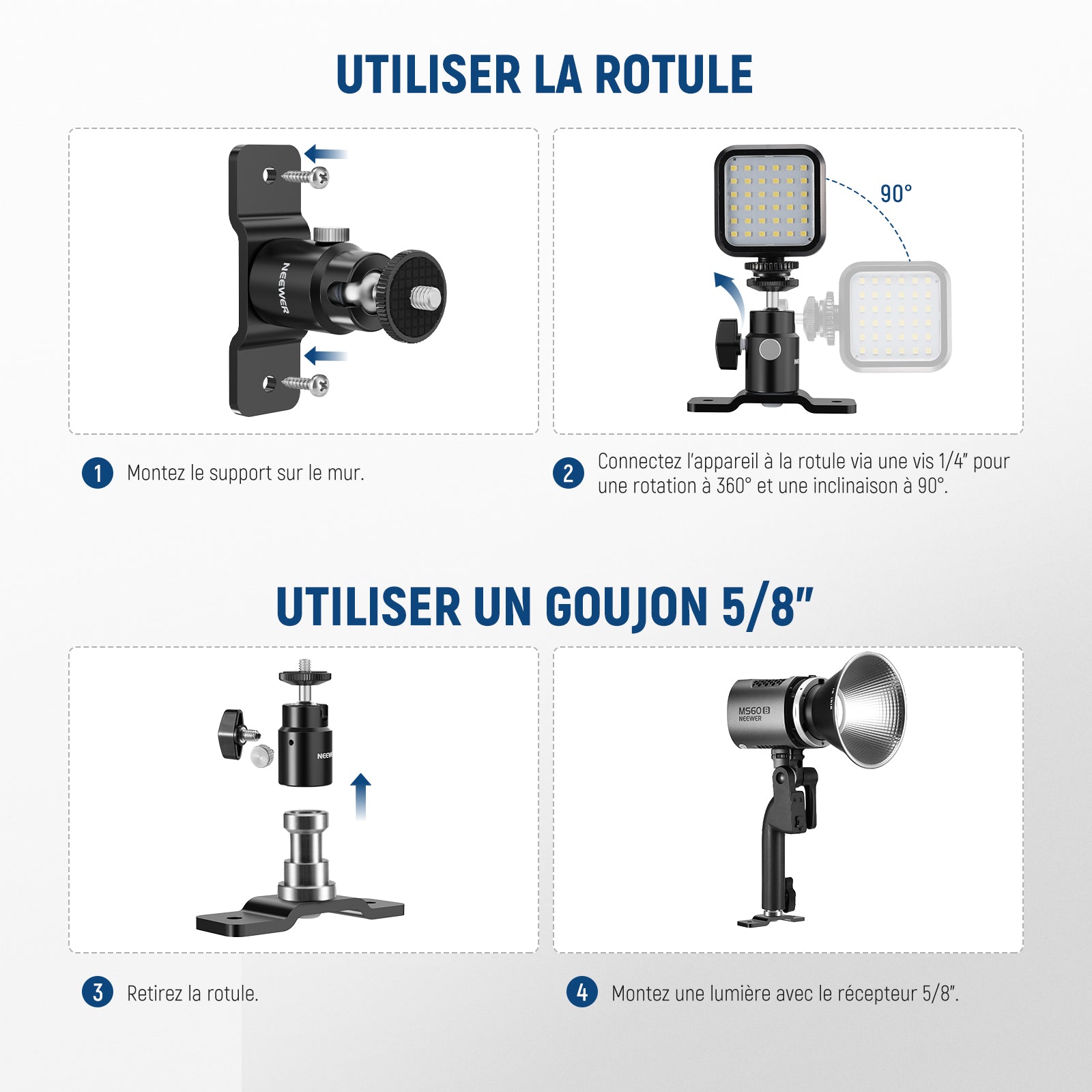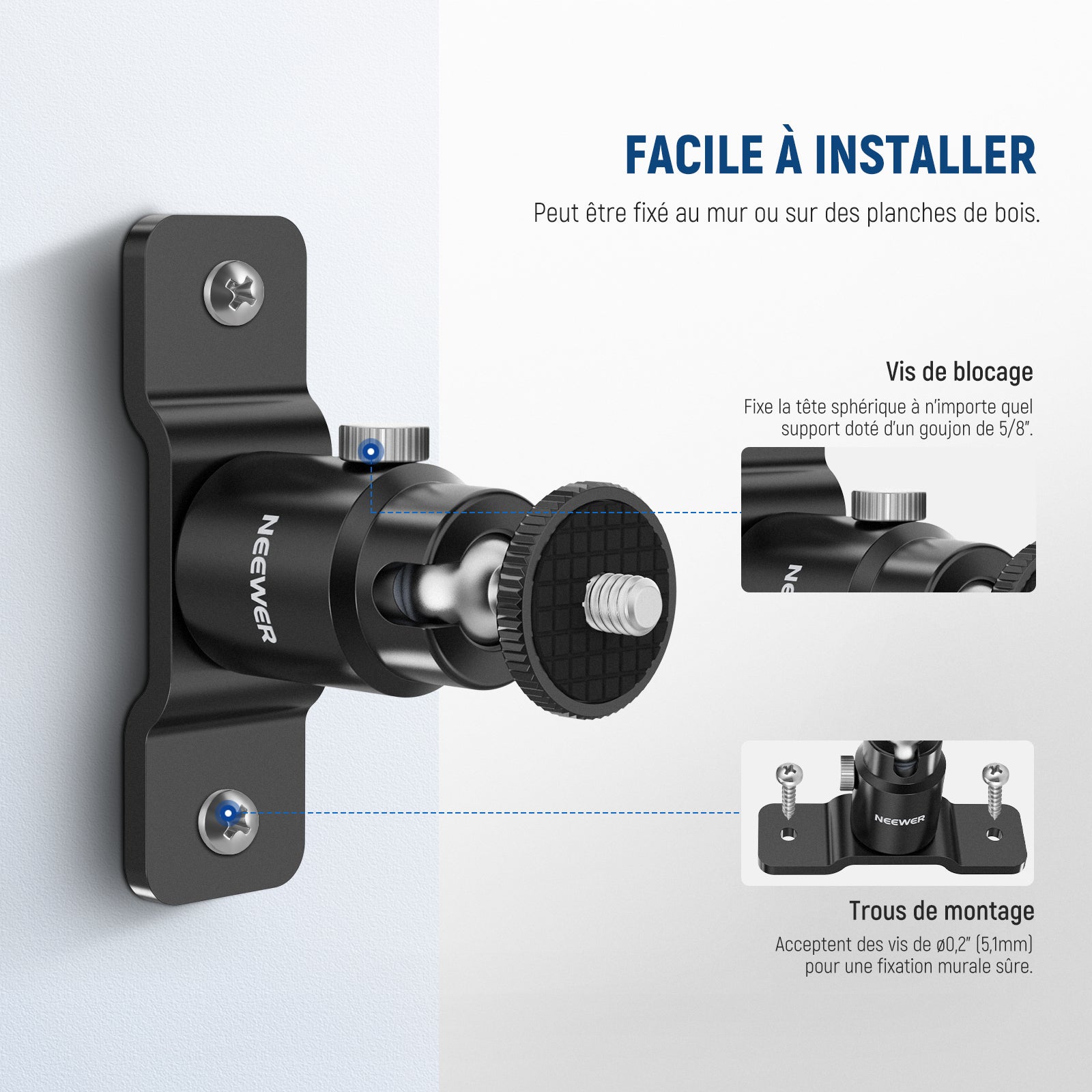 - 【Montage polyvalent à faible encombrement】Les supports de fixation murale NEEWER T offrent une solution plus compacte et plus sûre pour fixer les équipements aux murs ou aux plafonds dans les studios de photographie, de vidéographie, les salons de coiffure et les espaces de travail des tatoueurs