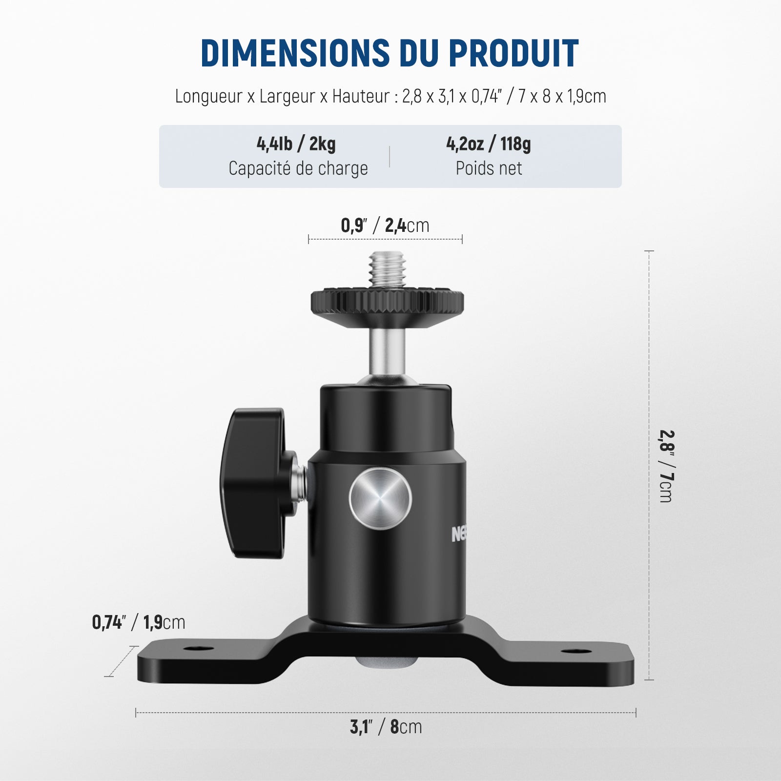 - 【Tête à bille détachable】La rotule à boule avec une rotation de 360°et une inclinaison de 90°permet d'obtenir l'angle souhaité. Détachez la en retirant deux vis et utilisez le goujon de 5/8" caché à l'intérieur