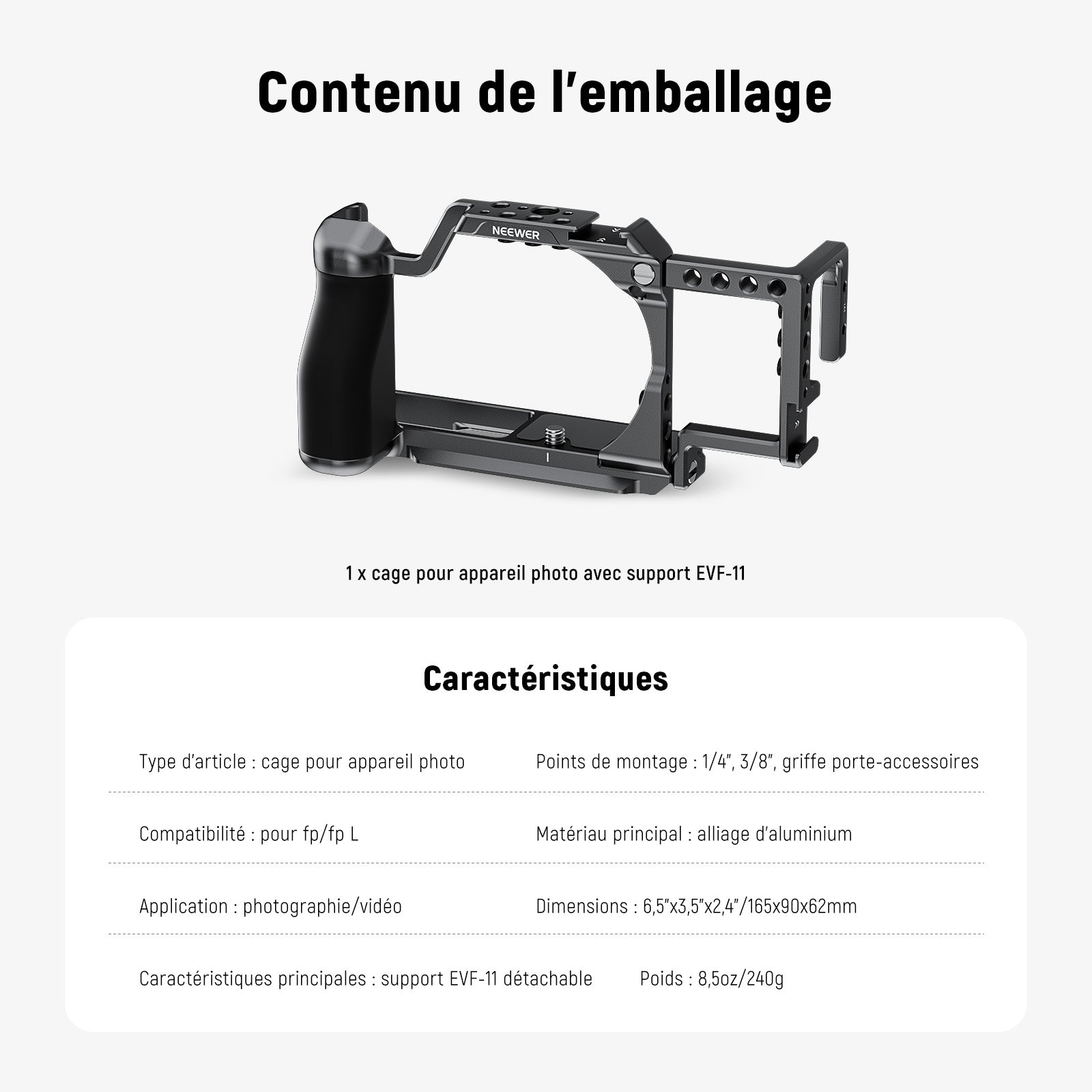 NEEWER CA132 Cage de Caméra avec Support EVF-11 pour SIGMA fp/fp L