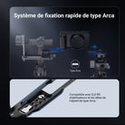 • Libération rapide de type Arca : le support de plaque de base à dégagement rapide est compatible avec les têtes de trépied de type Arca pour une fixation rapide et sûre