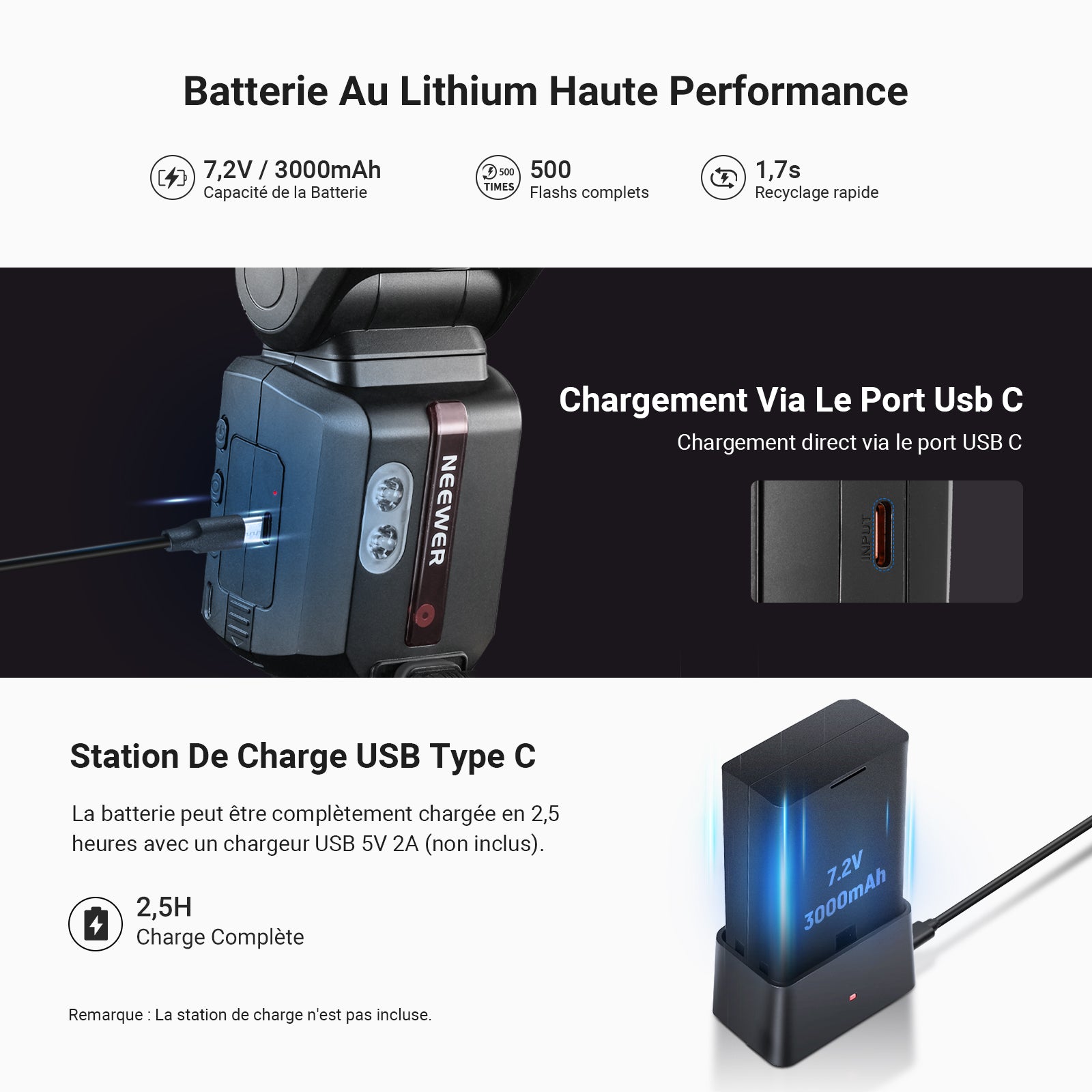 - Jusqu'à 530 flashs et recharge rapide- Dotée d'une batterie au lithium de 3000 mAh, cette lampe photo fournit jusqu'à 530 flashs à pleine puissance, avec une recharge rapide en 0,7s. Kit d'éclairage photo idéal, indispensable pour les créateurs de contenu et les influenceurs pour leurs portraits.
