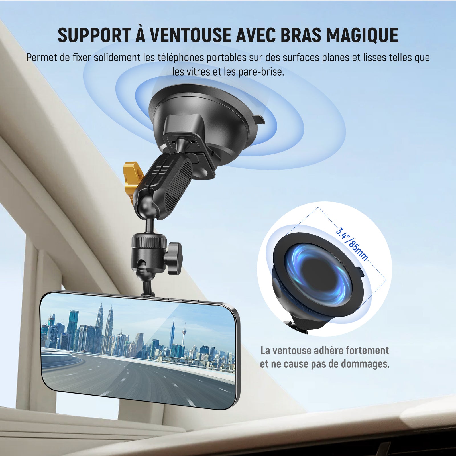 - 【Support de Téléphone Magnétique Polyvalent】 Notre support de téléphone à ventouse est fourni avec un support de téléphone magnétique, compatible avec MagSafe iPhone 15 14 13 12 séries. Les 2 anneaux métalliques inclus peuvent être collés à une coque de téléphone pour les smartphones non équipés MagSafe. Cet accessoire photo est compatible avec Samsung Galaxy S24 S23 S22 Ultra Google Pixel 8 7 Pro Huawei P60 Mate60 Pro et autres Android smartphones. Accrochez votre téléphone où vous voulez.