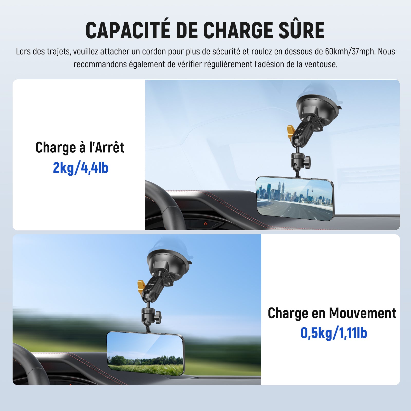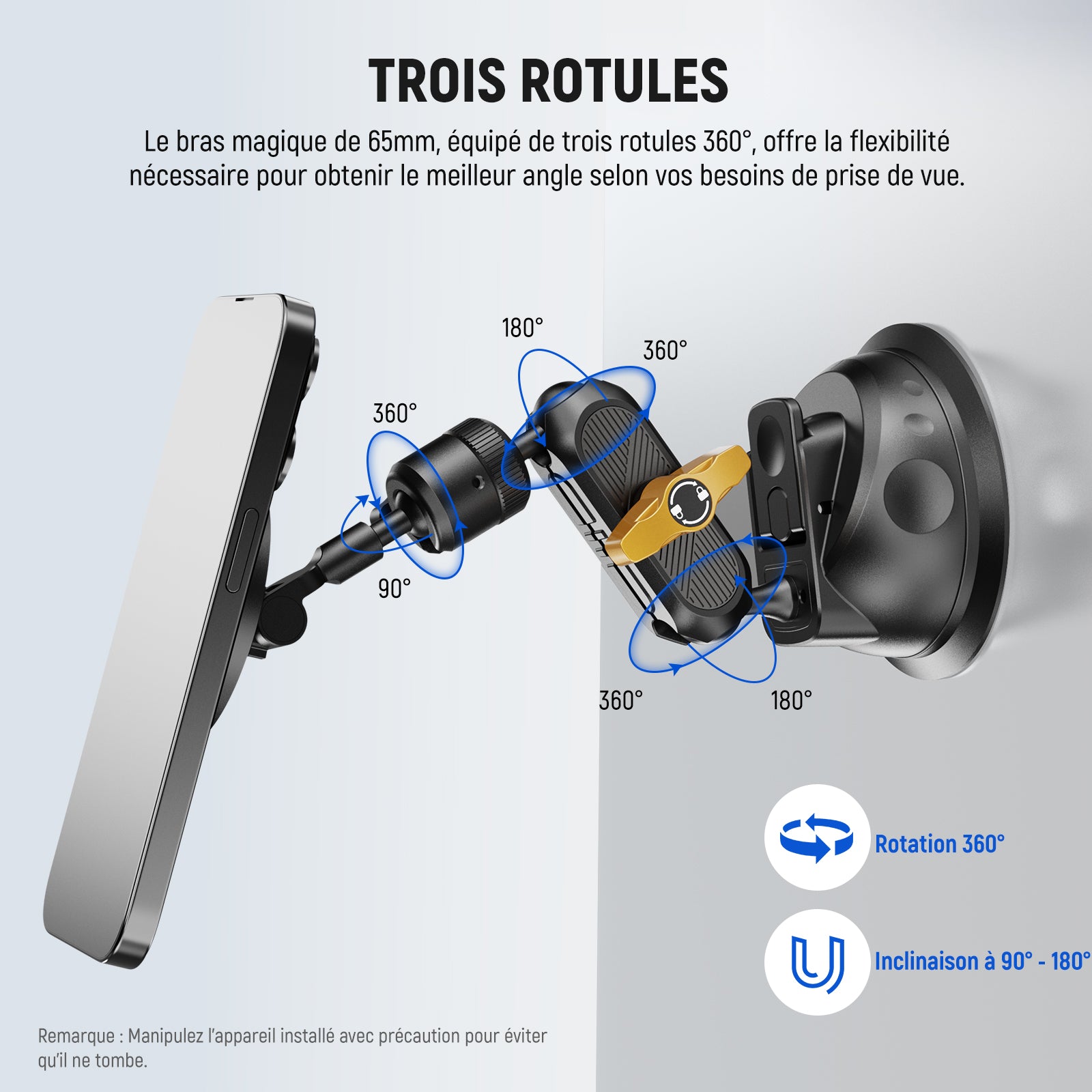 - 【Angle de prise de vue flexible】 Le bras magique de 2,6"/65 mm de ce kit essentiel pour l'enregistrement POV comprend trois rotules pivotantes à 360° pour un réglage multi-angle et une fente en forme de U pour une inclinaison verticale à 90°. Que vous fassiez du vlogging, du streaming en direct ou que vous tourniez des interviews, ce support de caméra de téléphone pour voiture offre des possibilités infinies pour améliorer la qualité de votre travail