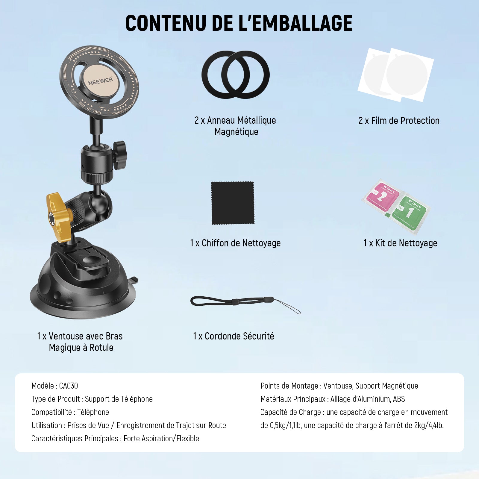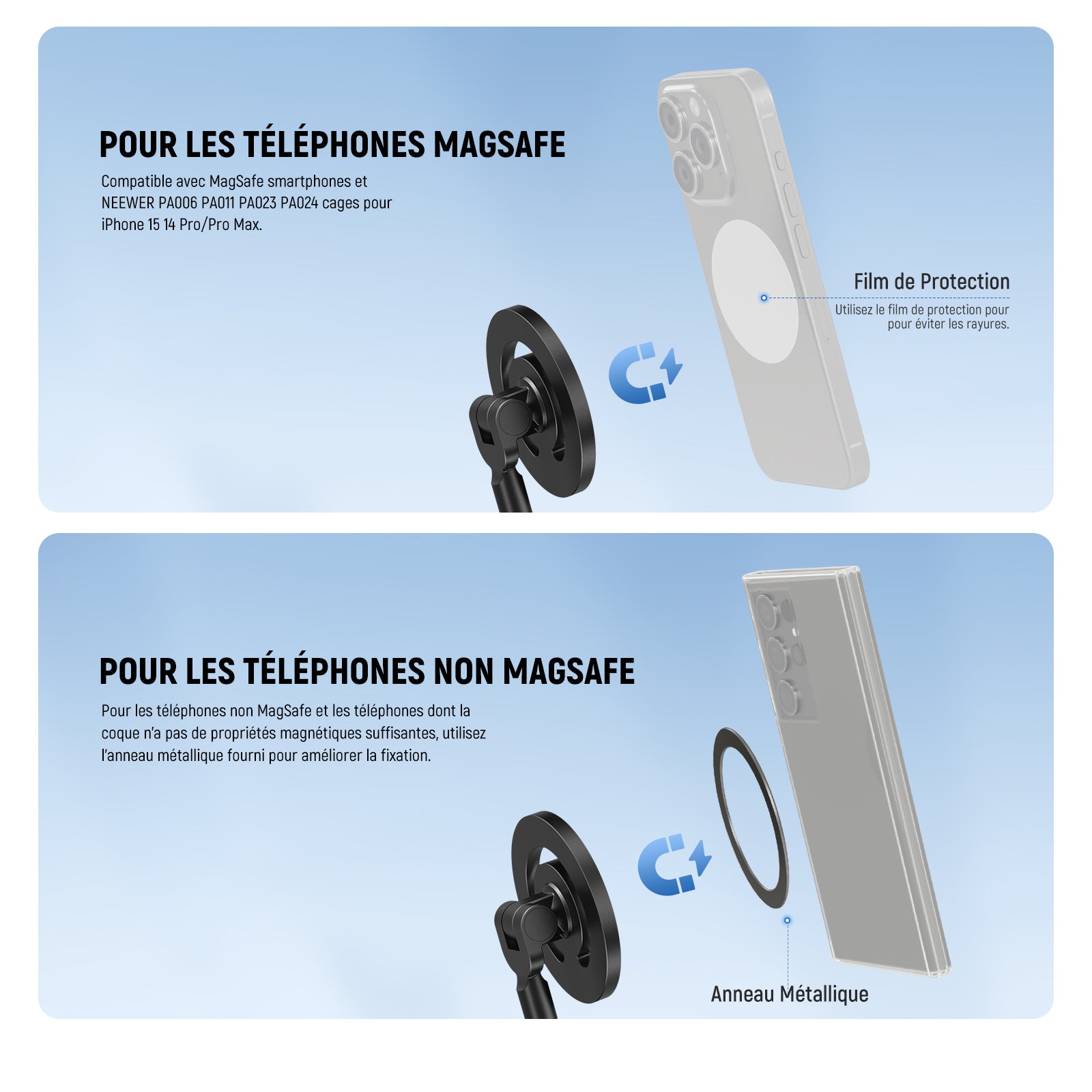 NEEWER CA030 Support de téléphone à Ventouse magnétique avec Bras Magique