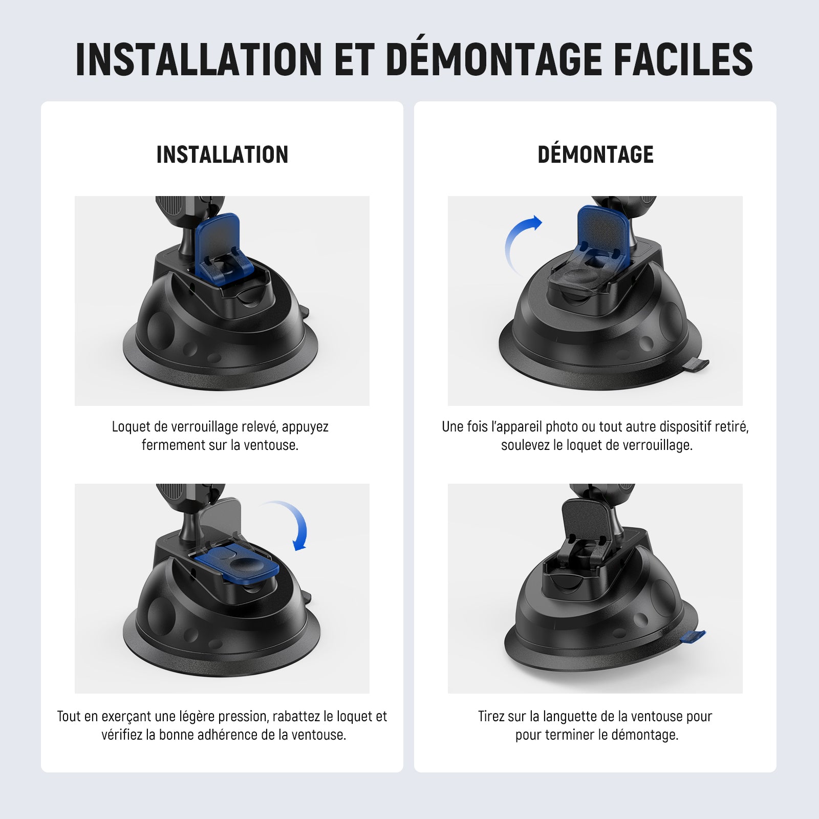 - 【Ventouse puissante avec bras magique】 La ventouse à pompe à air de 3,35"/85 mm avec un bras magique flexible tient fermement sur toutes les surfaces lisses, plates et non poreuses comme le pare-brise de la voiture, la fenêtre, le tableau de bord ou le carrelage, permettant à votre smartphone d'atteindre n'importe quel angle souhaité pour l'enregistrement vidéo POV et l'utilisation dans diverses scènes comme l'enregistrement de séquences de voyage amusantes, le visionnage de films Netflix comme support de téléphone de douche ou comme support de téléphone magnétique pour la salle de sport
