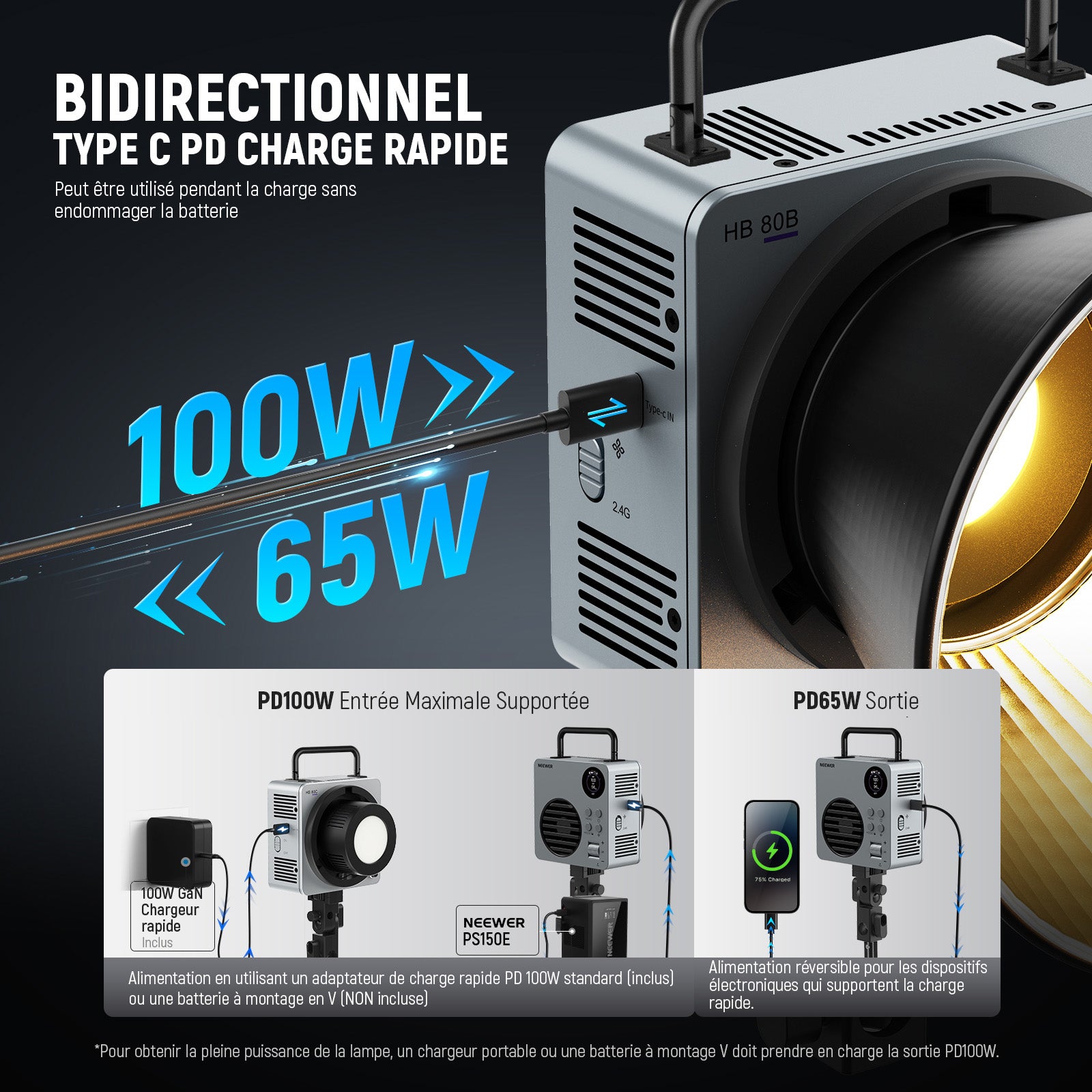 NEEWER HB80B Éclairage Vidéo LED Mini COB Bicolore 80W