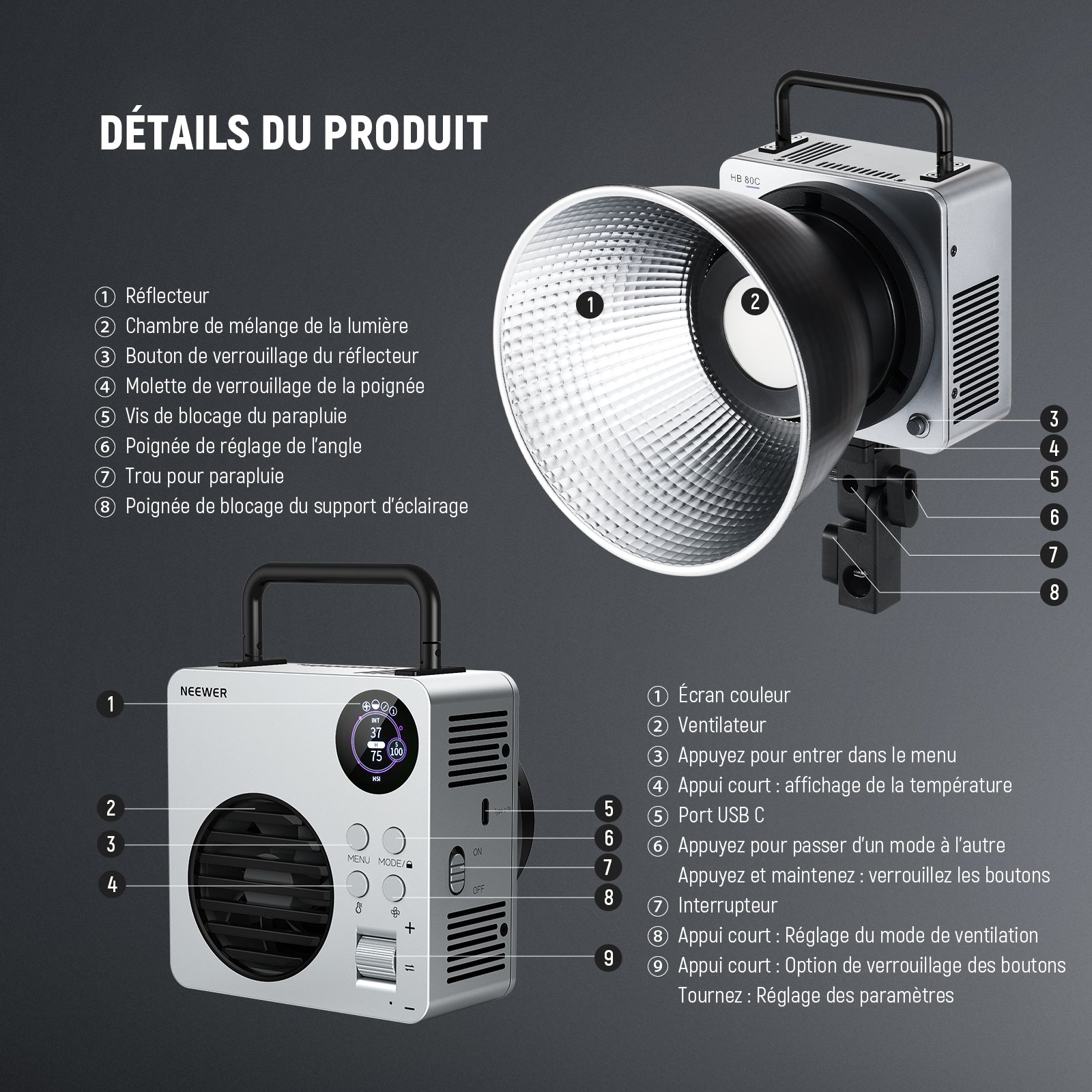 NEEWER HB80C Éclairage Vidéo LED RGBWW 80W