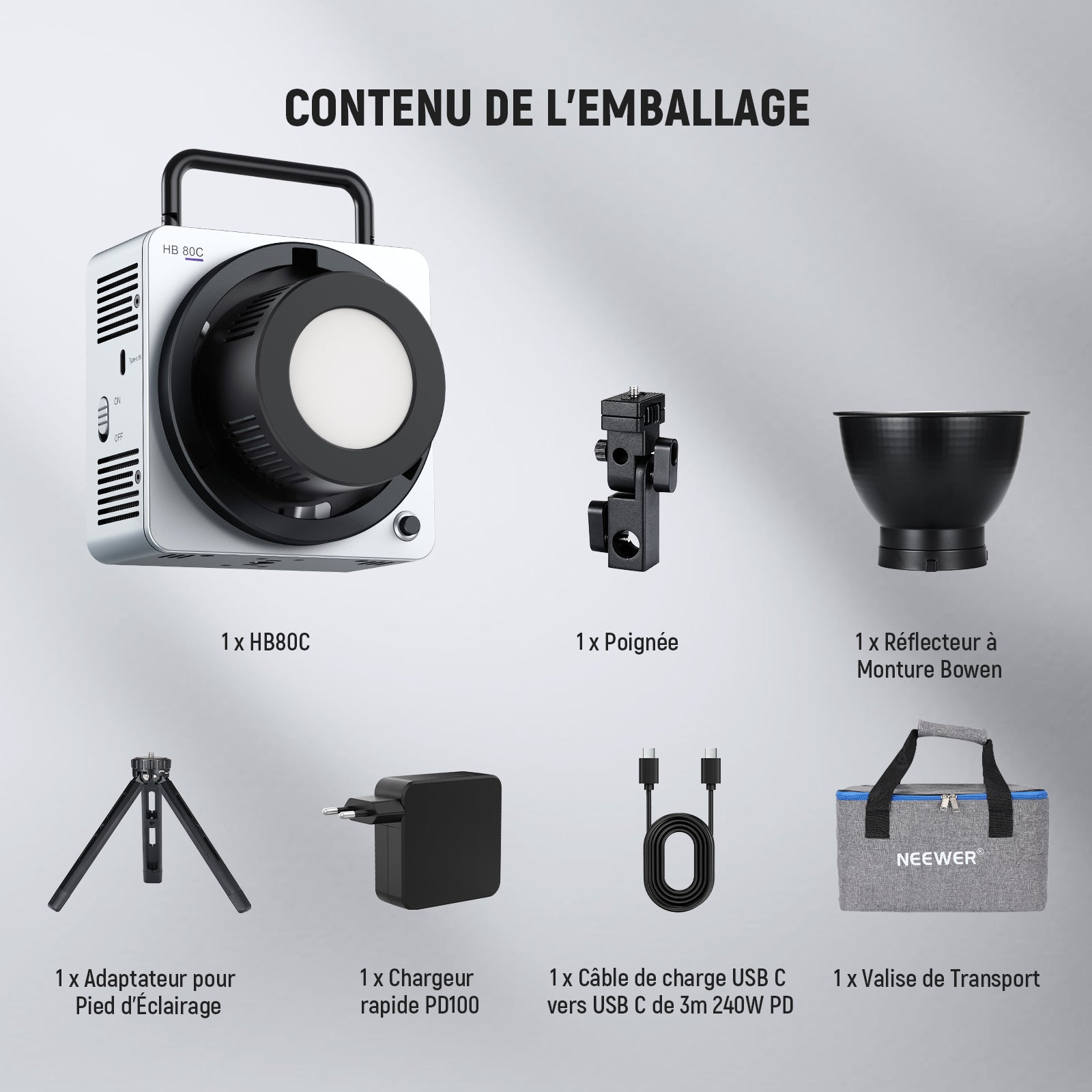 - 1 x Lumière vidéo LED HB80C