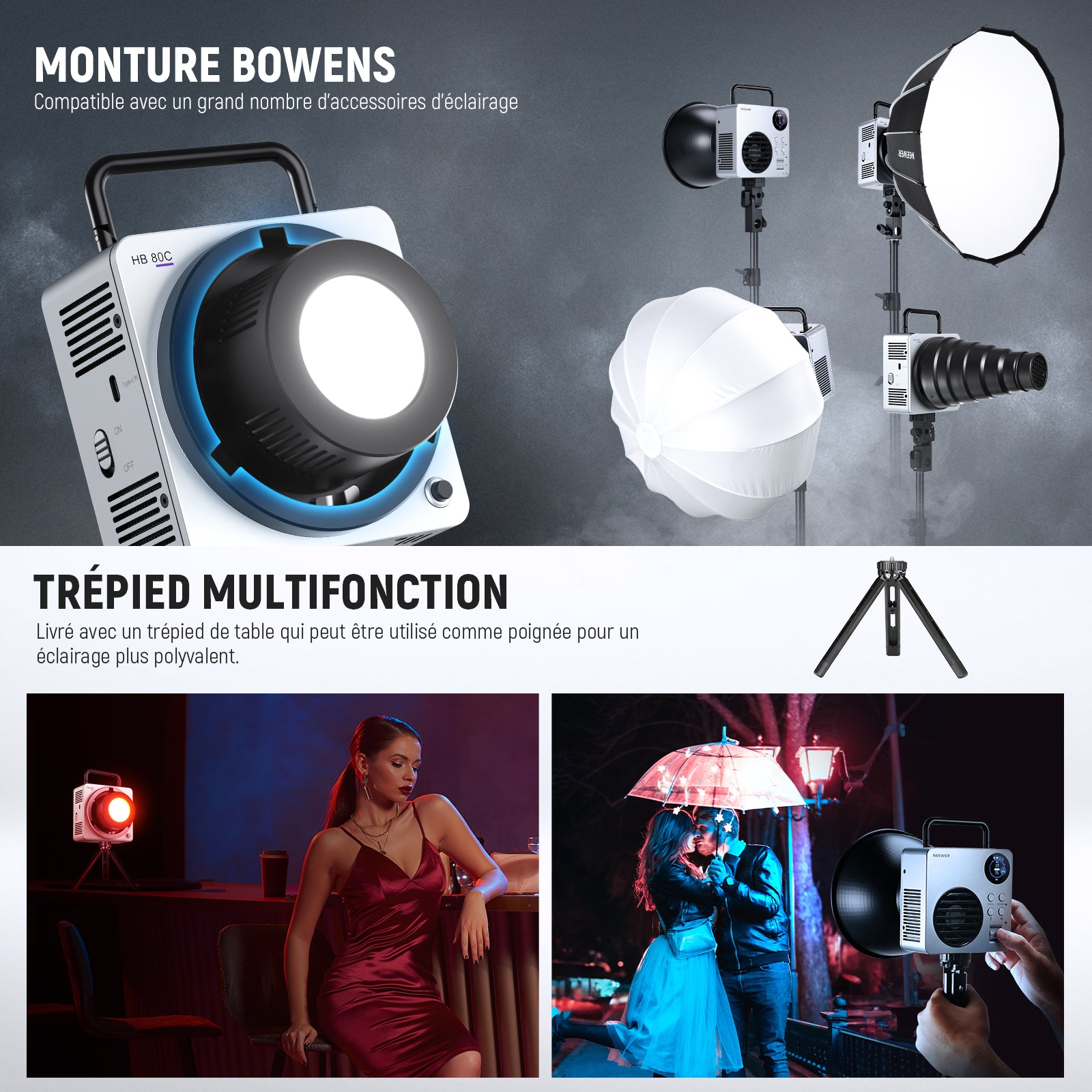 - Points de montage : Monture Bowens