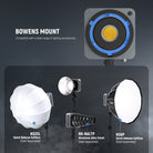 - Portable LED Studio Light- Separated from the controller, HS200B is 5.1"×5.1"×2.4" and weighs 2.2lb, compact, lightweight to handheld via the handle bracket. Or mounted on a tripod light stand for outdoor photography, camera product photo, podcast, interviews as content creator essential video soft lighting kit, influencer must have equipment. Includes a standard reflector for enhanced, uniform output. A Bowens mount attaches other accessories or gear like softboxes, snoots, and beauty dishes