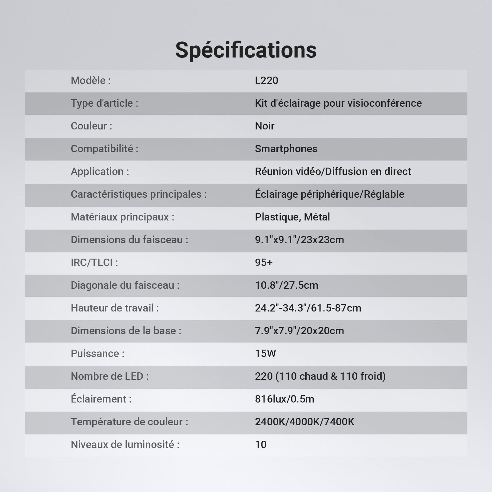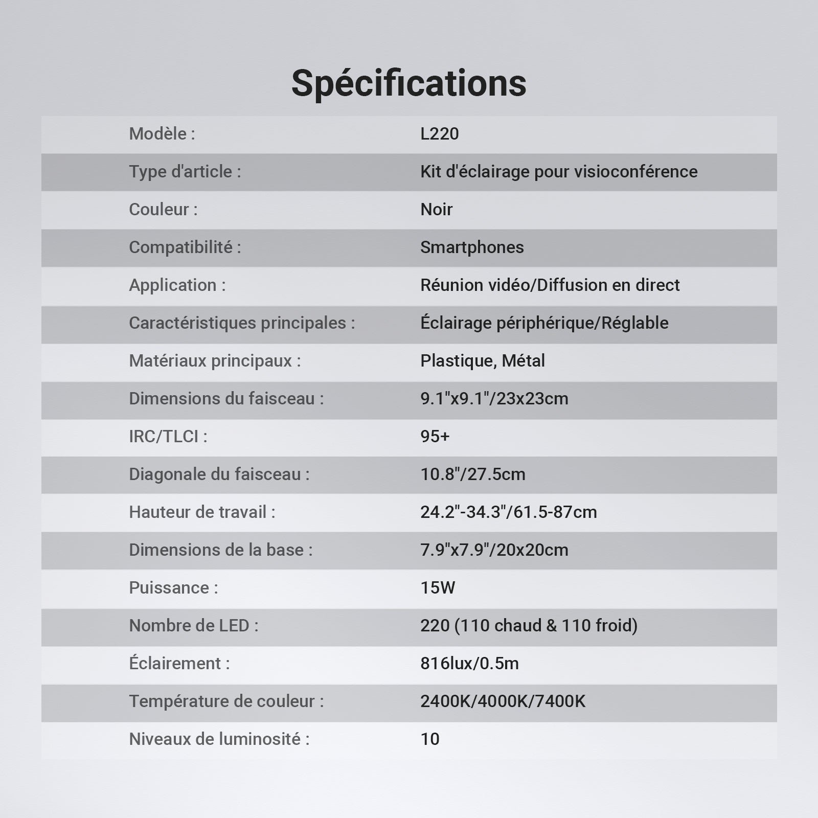• Type d’article : Kit d’éclairage pour visioconférence