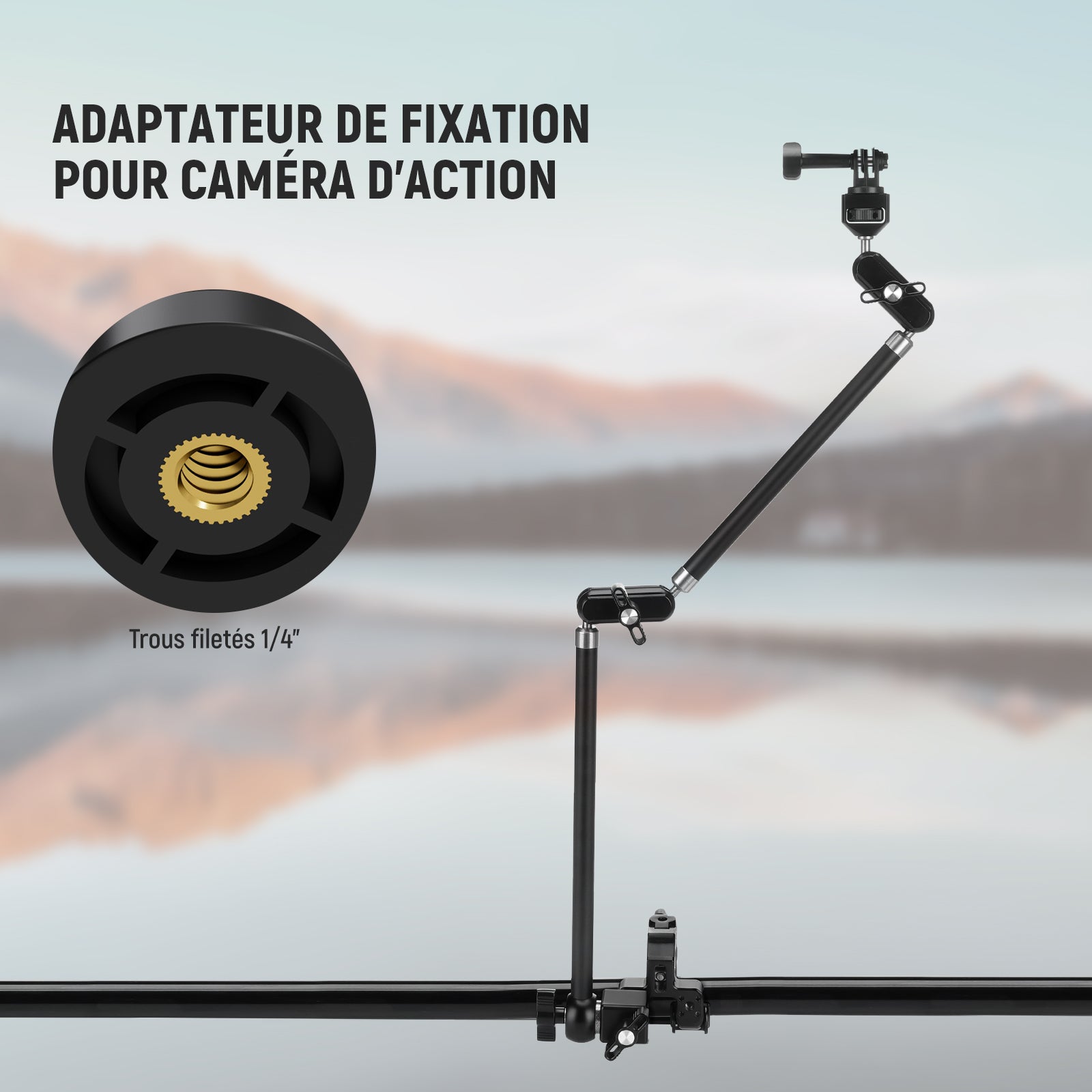 - Accessoire polyvalent avec support de caméra d'action : ce bras magique comme accessoire de photographie dispose d'une vis de 1/4" sur le dessus pour les appareils tels que les appareils reflex numériques, les moniteurs et est compatible avec Atomos Ninja V Insta360 X5 X4 X3 Insta 360 Ace Pro Go 3S DJI Osmo Pocket 3 2 Creator Combo, etc. Comprend un adaptateur de montage à trois broches, compatible avec GoPro Hero 13 Go Pro 12 11 10 9 DJI Action 5 Pro 4 AKASO Brave 8 7 EK7000, etc. Goupilles de fixation anti-torsion et patins en caoutchouc antidérapants pour éviter les vacillements