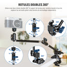 - Têtes sphériques doubles à 360° et portée étendue de 75 cm : avec un bras articulé en deux parties de 75 cm de long et deux têtes sphériques pivotantes à 360°, ce support de table pour appareil photo permet un réglage flexible avec des boutons de verrouillage indépendants. C'est l'accessoire idéal pour le bureau comme support de microphone plat pour podcasts, enregistrements vidéo YouTube & TikTok, etc. Remarque : la Super Clamp & le bras magique sont solidement reliés entre eux et ne peuvent pas être utilisés séparément