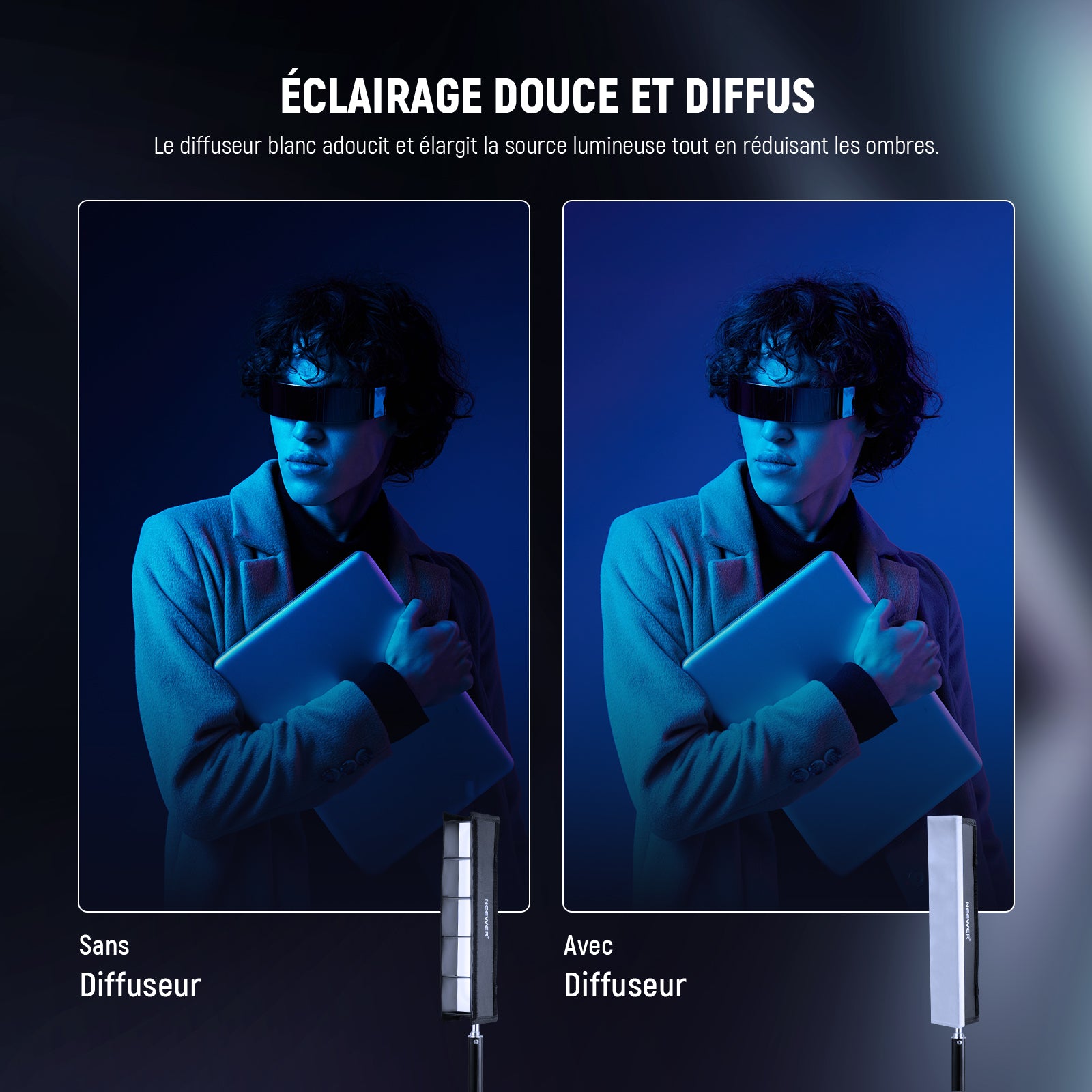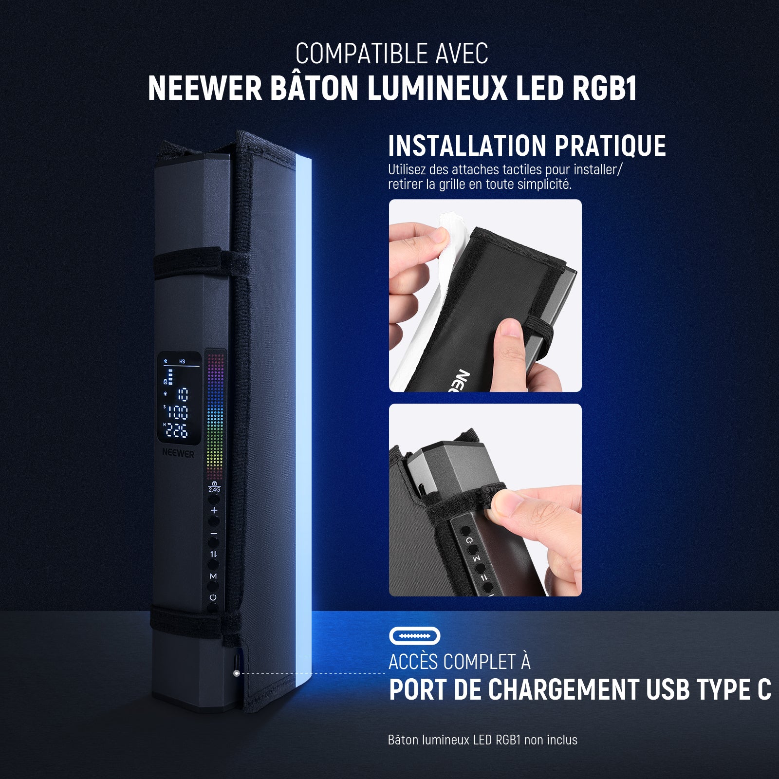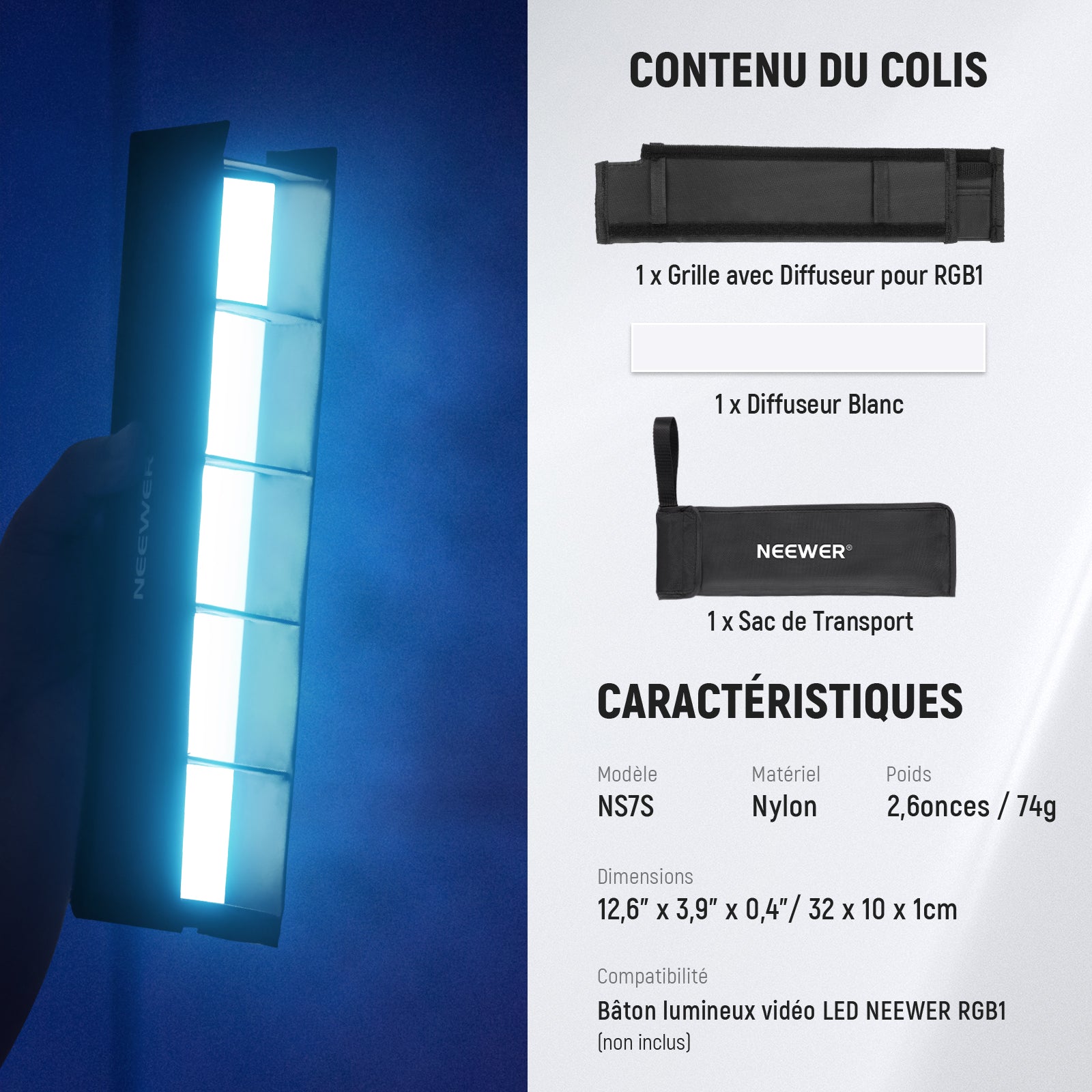 NEEWER NS7S Diffuseur de boîte à lumière tubulaire avec grille pour RGB1
