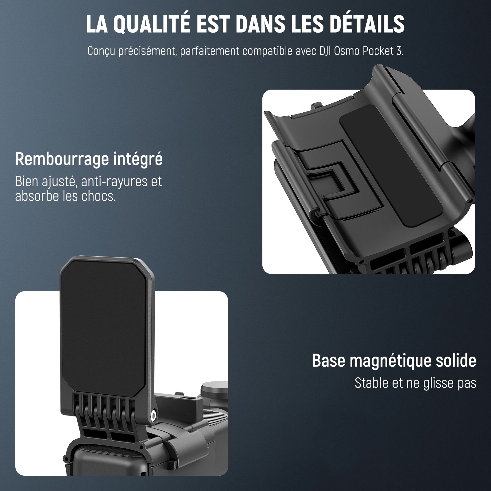 - 【Compatible avec DJI Osmo Pocket 3】 Compatible avec le DJI Osmo Pocket 3, ce support de fixation magnétique pour caméra d’action avec ventouse offre un accès complet aux boutons, au joystick et au port pour un fonctionnement fluide et un contrôle optimal avec les accessoires du Creator Combo. Il fait également office de pince-support de bureau pour caméra d’action, vous permettant de capturer facilement des photos et vidéos exceptionnelles selon vos envies. Remarque : veuillez retirer la dragonne avant utilisation.