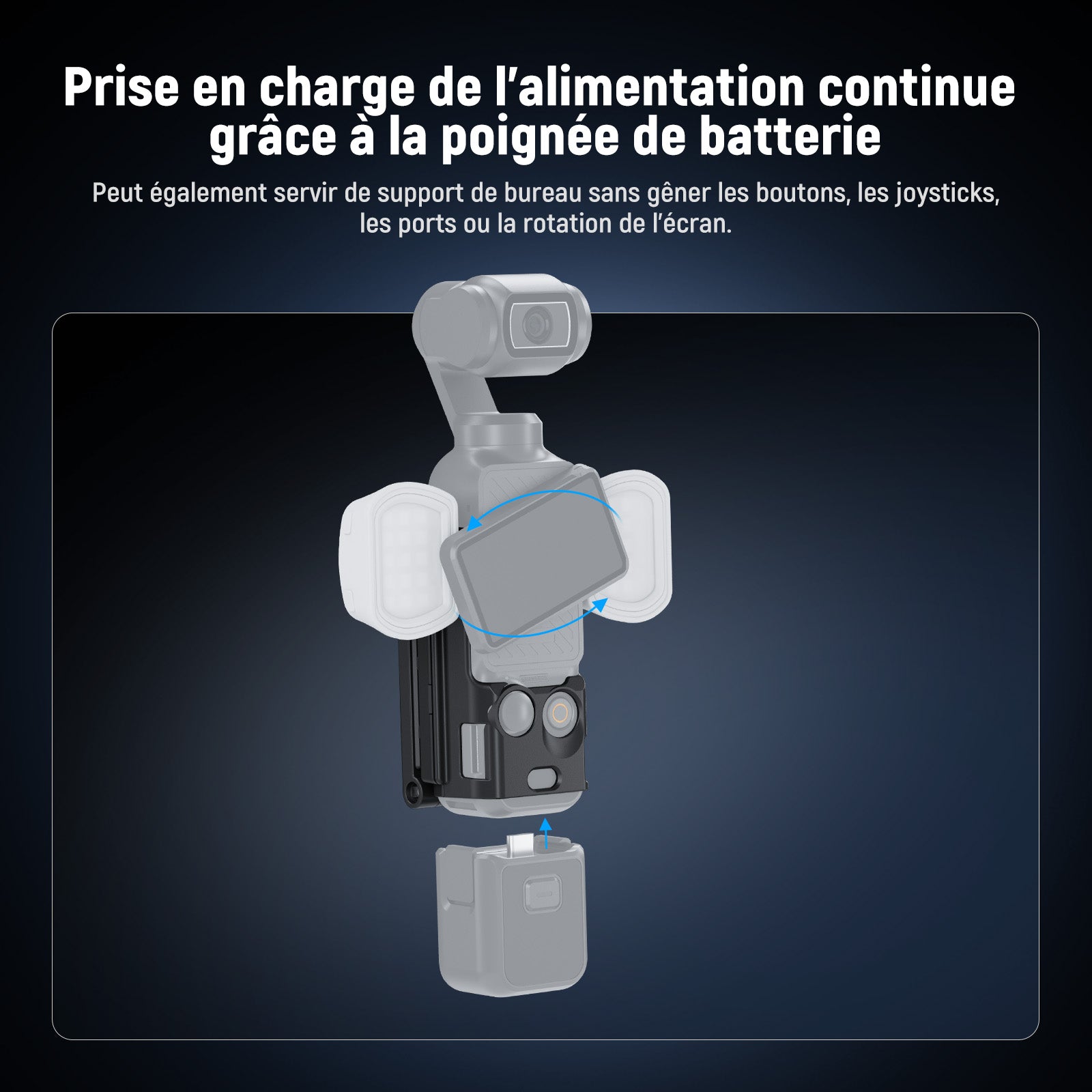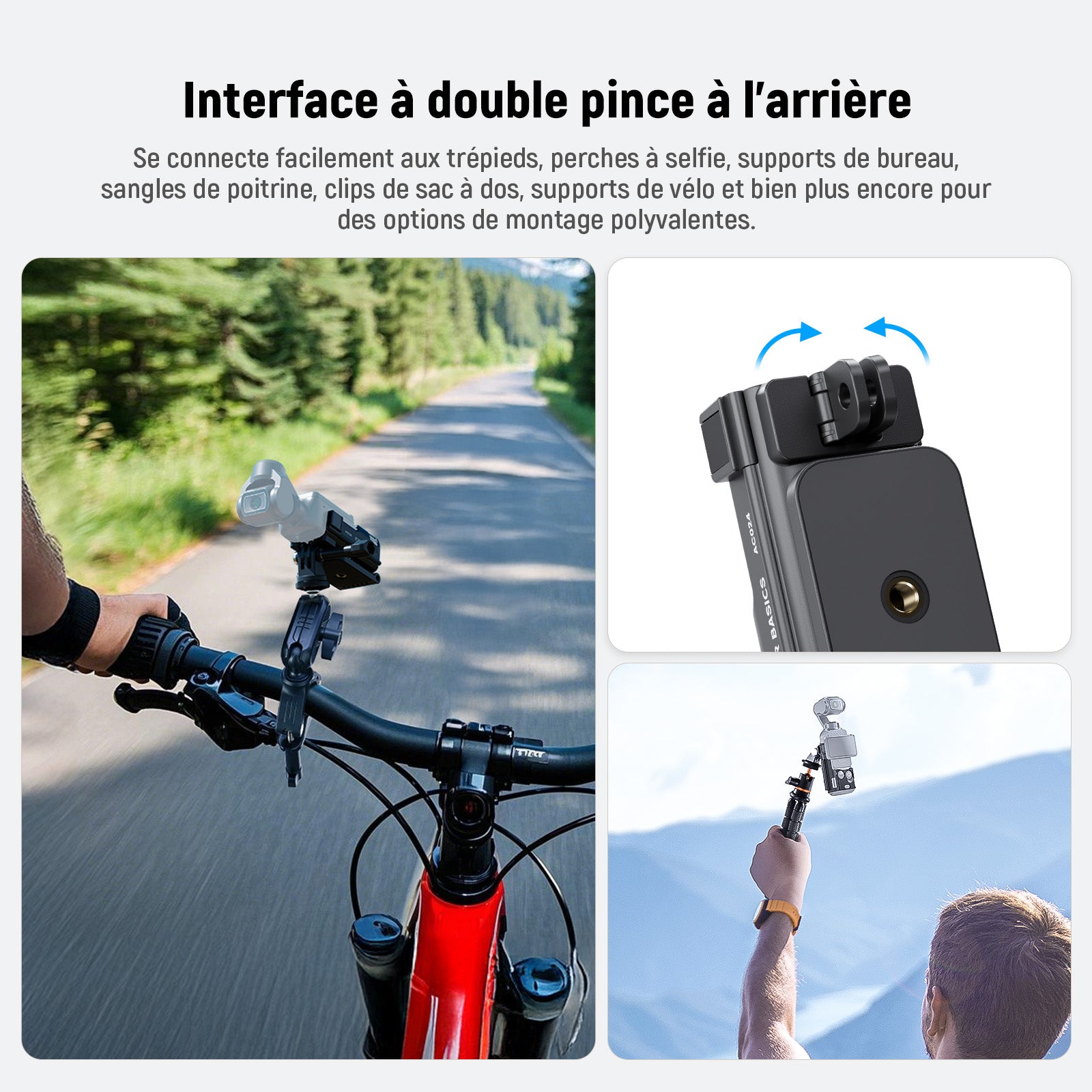 - 【Équipé d'un trou de vis de 1/4" et de deux interfaces de serrage】avec un trou fileté de 1/4" à la base et une interface pour deux pinces à l'arrière, le support de cage Pocket 3 se connecte facilement à des trépieds, des bâtons à selfie, des supports de bureau, des supports de sangle de poitrine, des clips de sac à dos, des supports de vélo et d'autres accessoires, et offre de nombreuses possibilités de fixation flexibles et stables pour différents scénarios de prise de vue